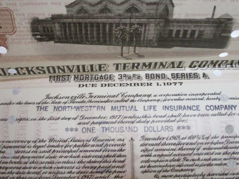Lot 181 - Jacksonville Terminal Company  1948 Florida $1000 CSX Bond Certificate