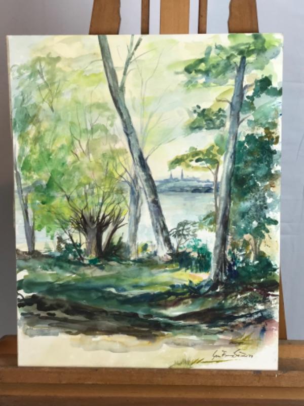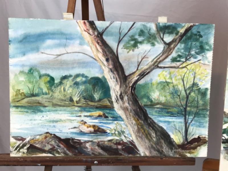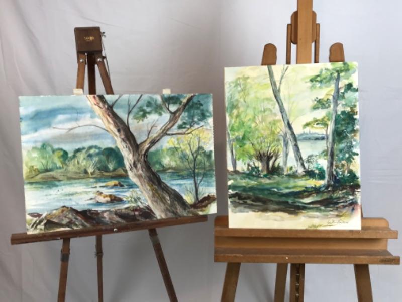 Pair of Jean Ranney Smith signed original watercolor paintings “Outskirts of the City” measures 20” tall x16” and “River Scenery” measures 22”x15”