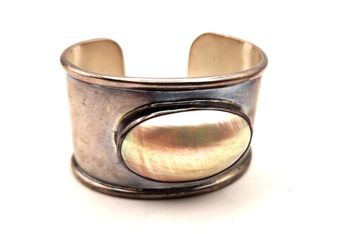 Lot #181 Lovely Sterling Silver Cuff Bracelet with Mother of Pearl Insert