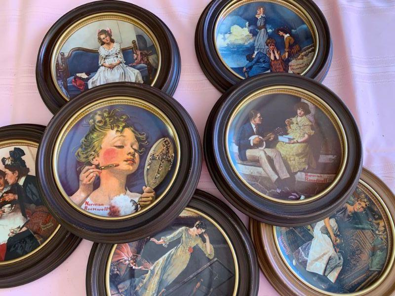 Framed Norman Rockwell collector's plates by Knowles Rediscoverd Women series.