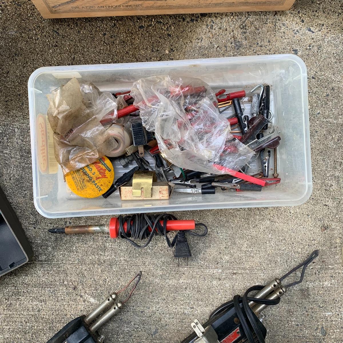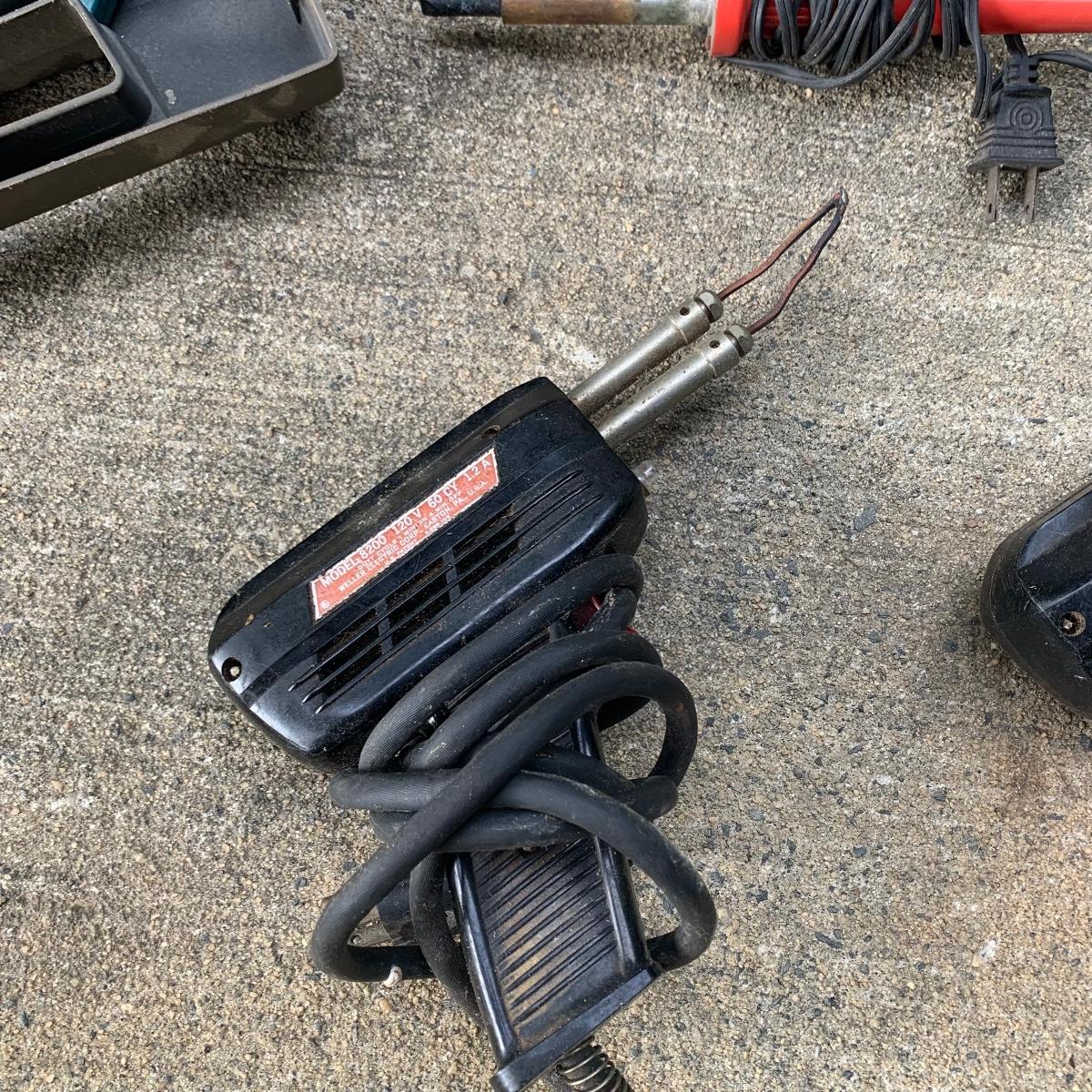 Fancy a new hobby! This lot features not one, but two Weller soldering guns, a label maker, an engraving tool, a wood burning kit, a box of soldering accessories, a soldering penand a plastic face shield. All items powered on when tested.