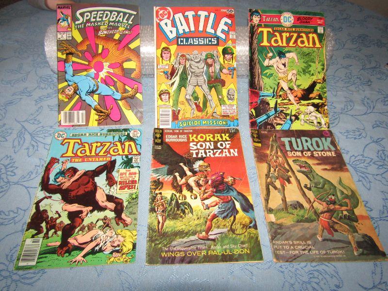 TARZAN, SPEEDBALL AND 4 OTHER VINTAGE COMICS IN FAIR CONDITION