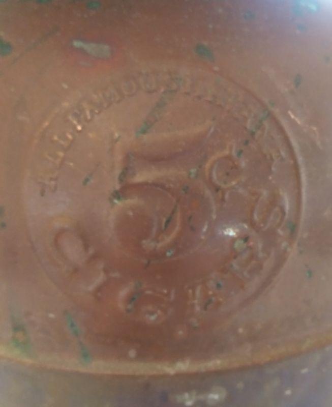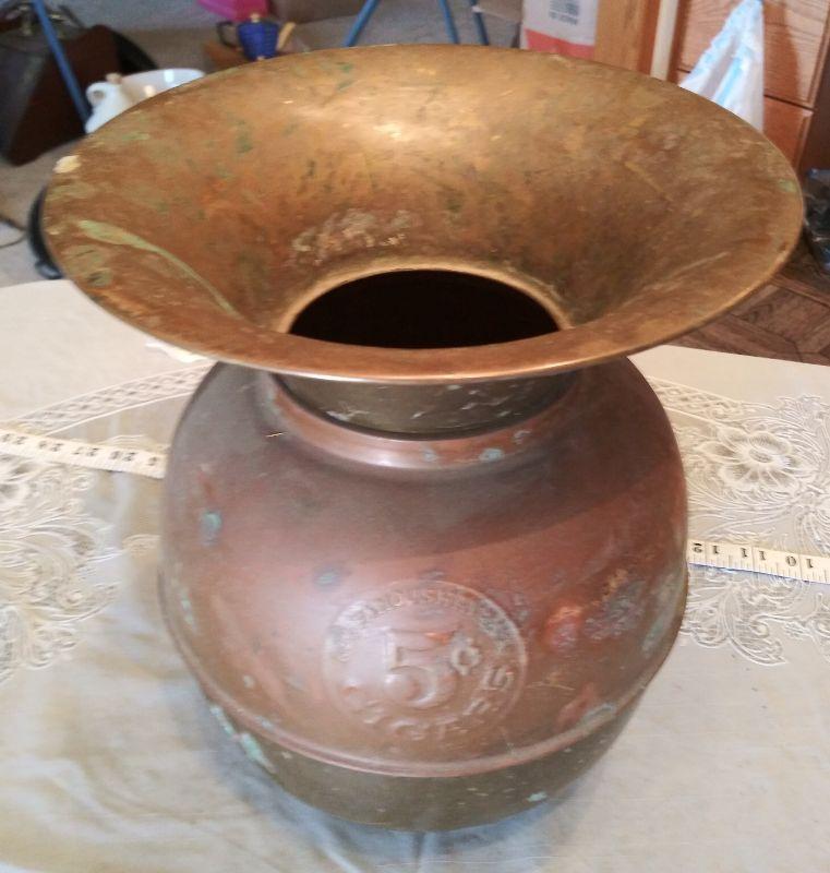 THE RAISED LETTERING ON BOTH SIDES OF SPITTOON READS,