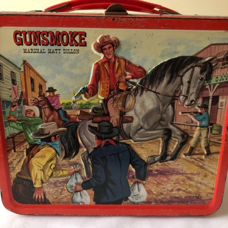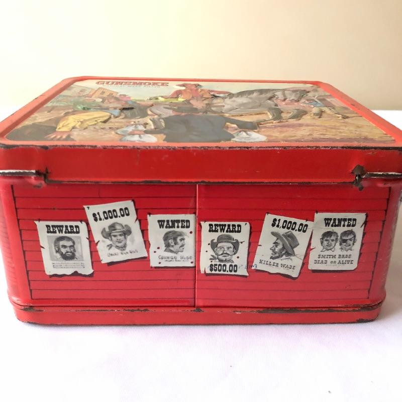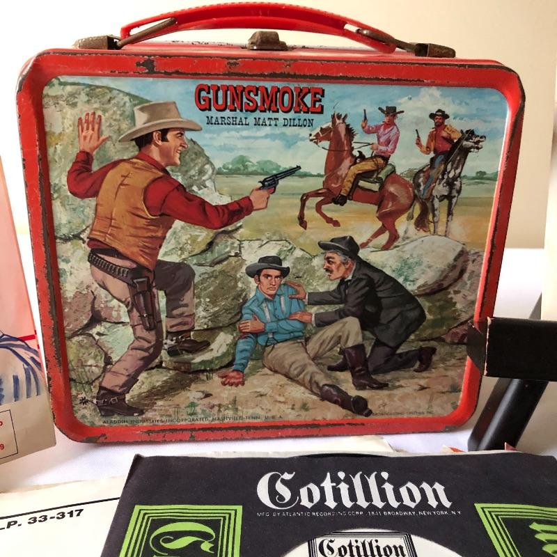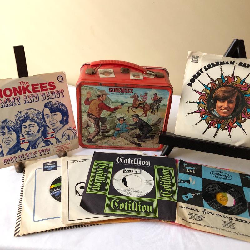 Yes!!! If the collection of 45 records all in their sleeves does not spark some excitement, The vintage Gunsmoke metal lunchbox with thermos is sure to bring a nostalgic smile. The Lunchbox measures 8 x 4 x 8. Shipping available.