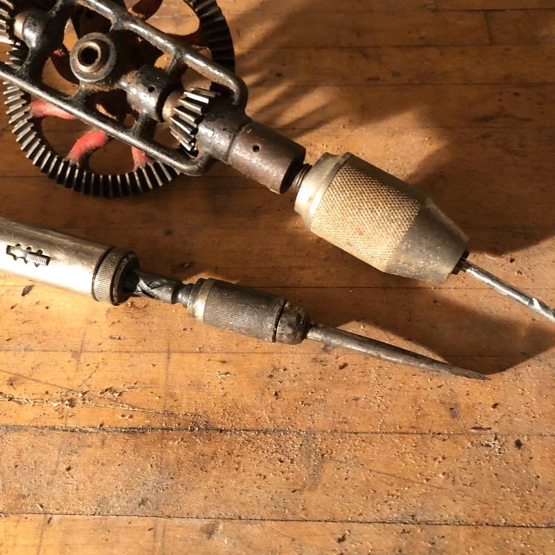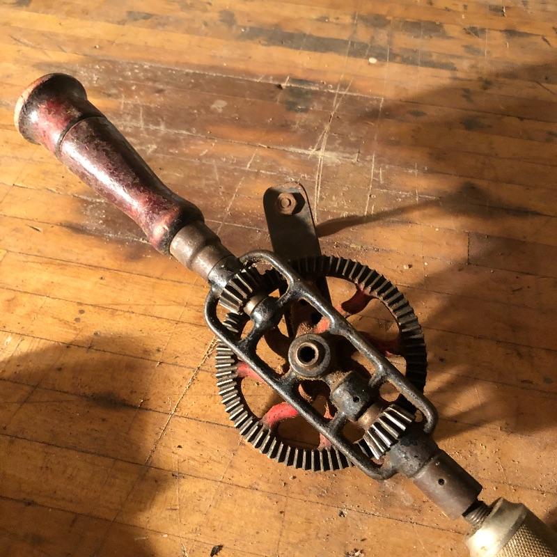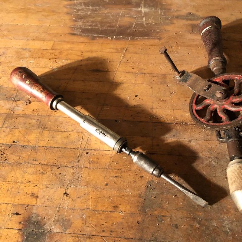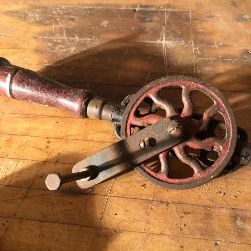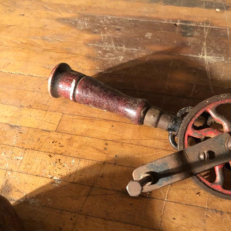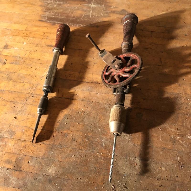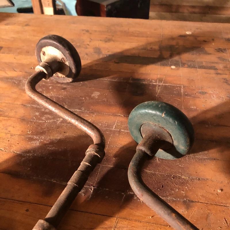 This is an interesting tool lot! It contains a handcrafted hand saw, hand drills, wooden tools and so much more! The grinder affixed to the work bench is not included in this lot. Shipping Available!