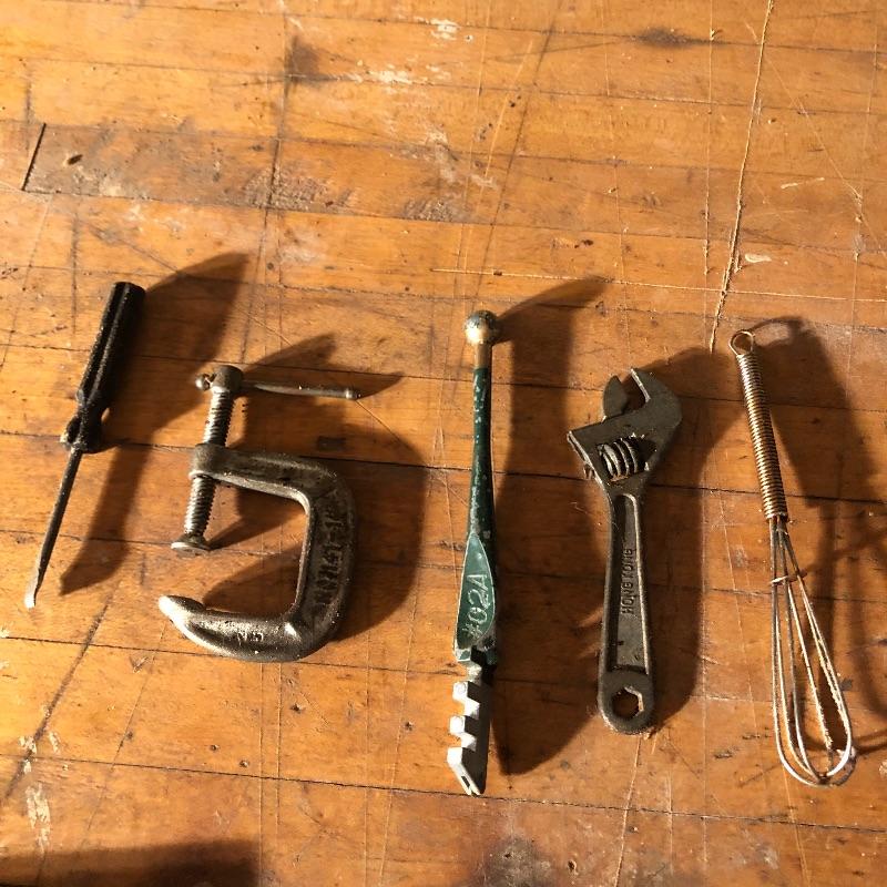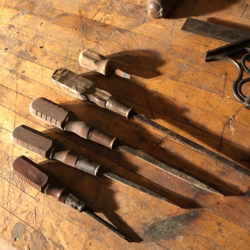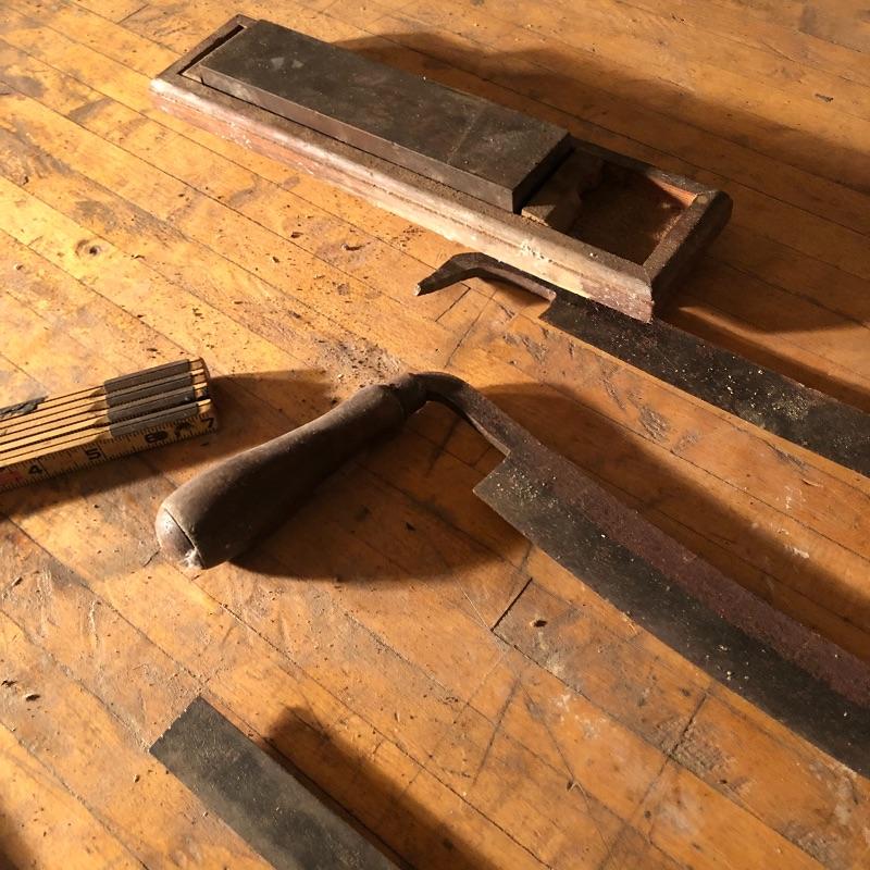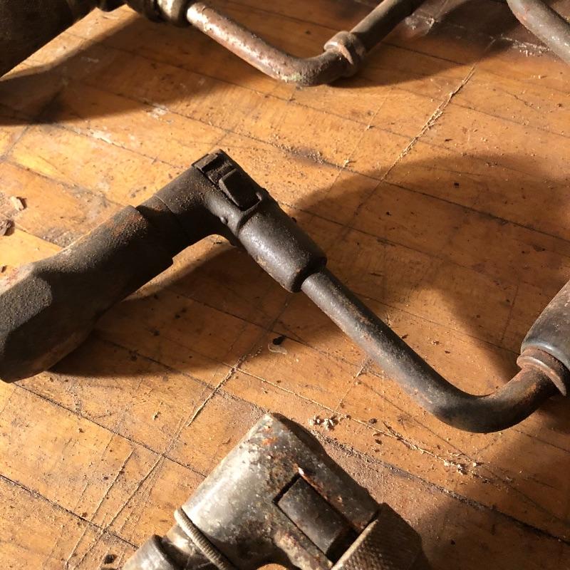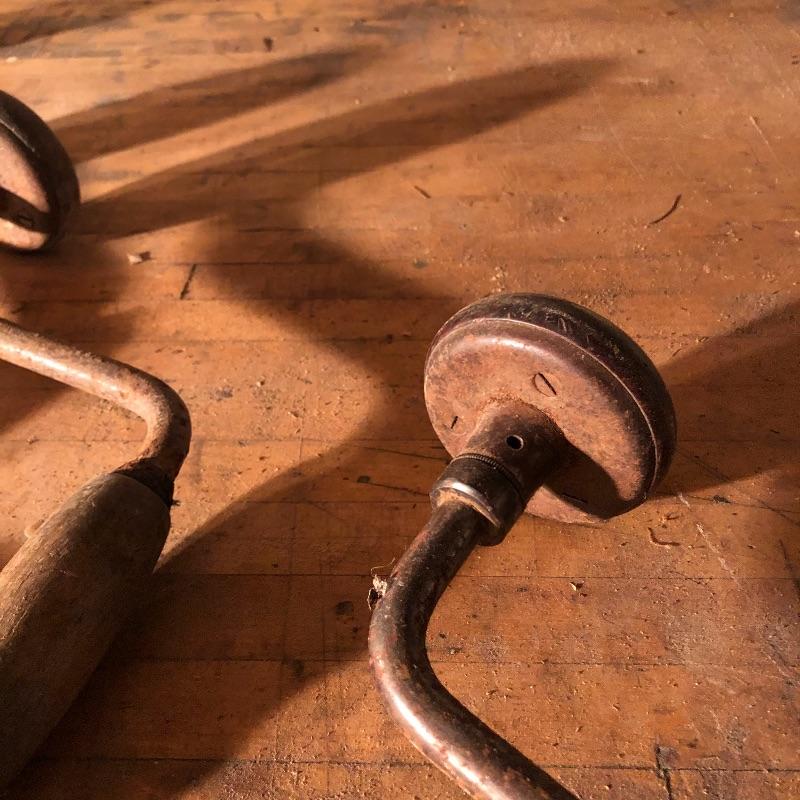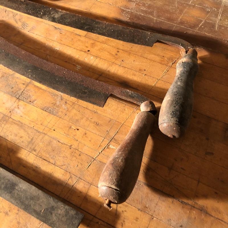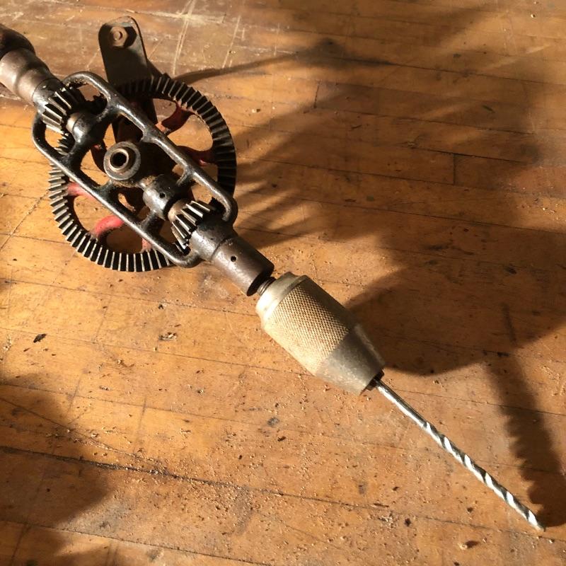 This is an interesting tool lot! It contains a handcrafted hand saw, hand drills, wooden tools and so much more! The grinder affixed to the work bench is not included in this lot. Shipping Available!