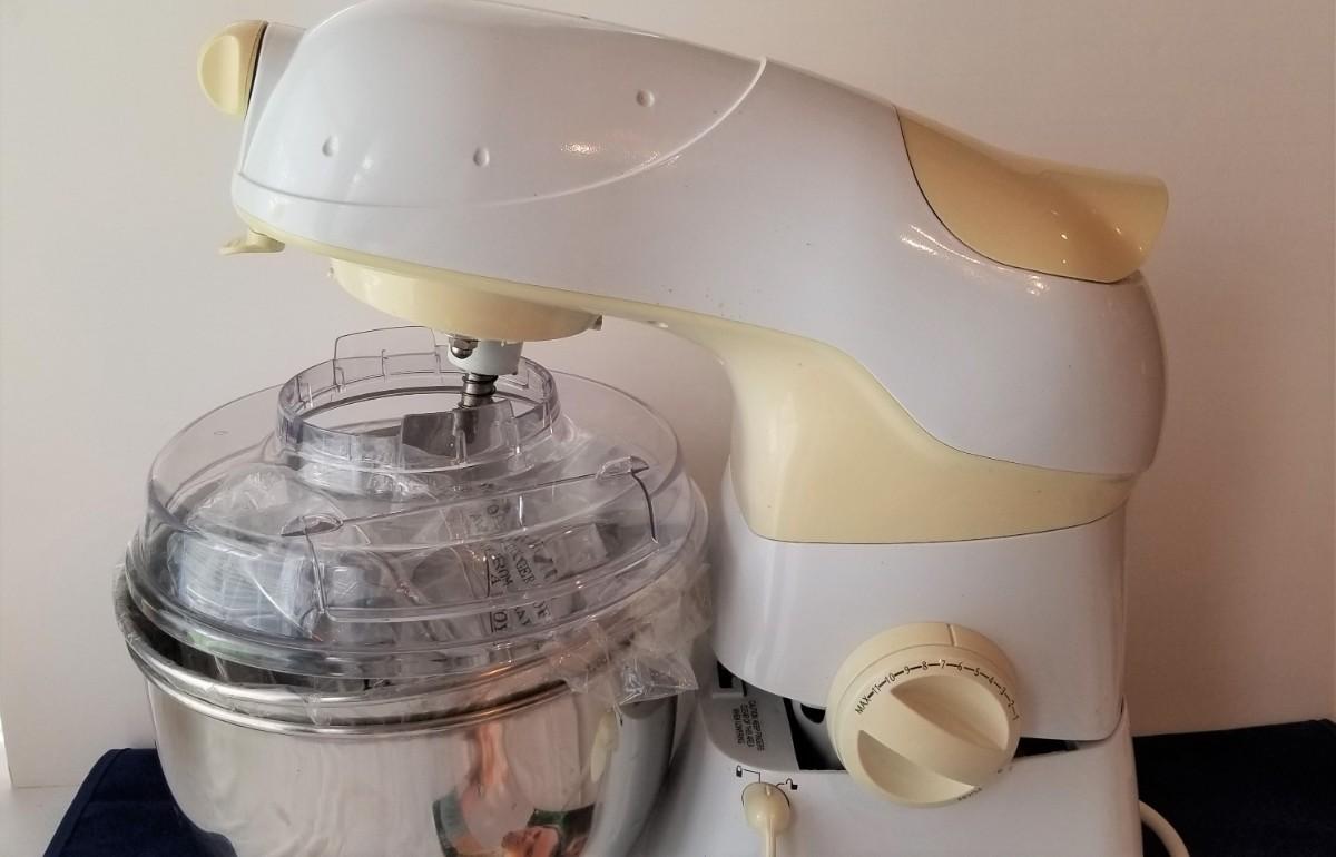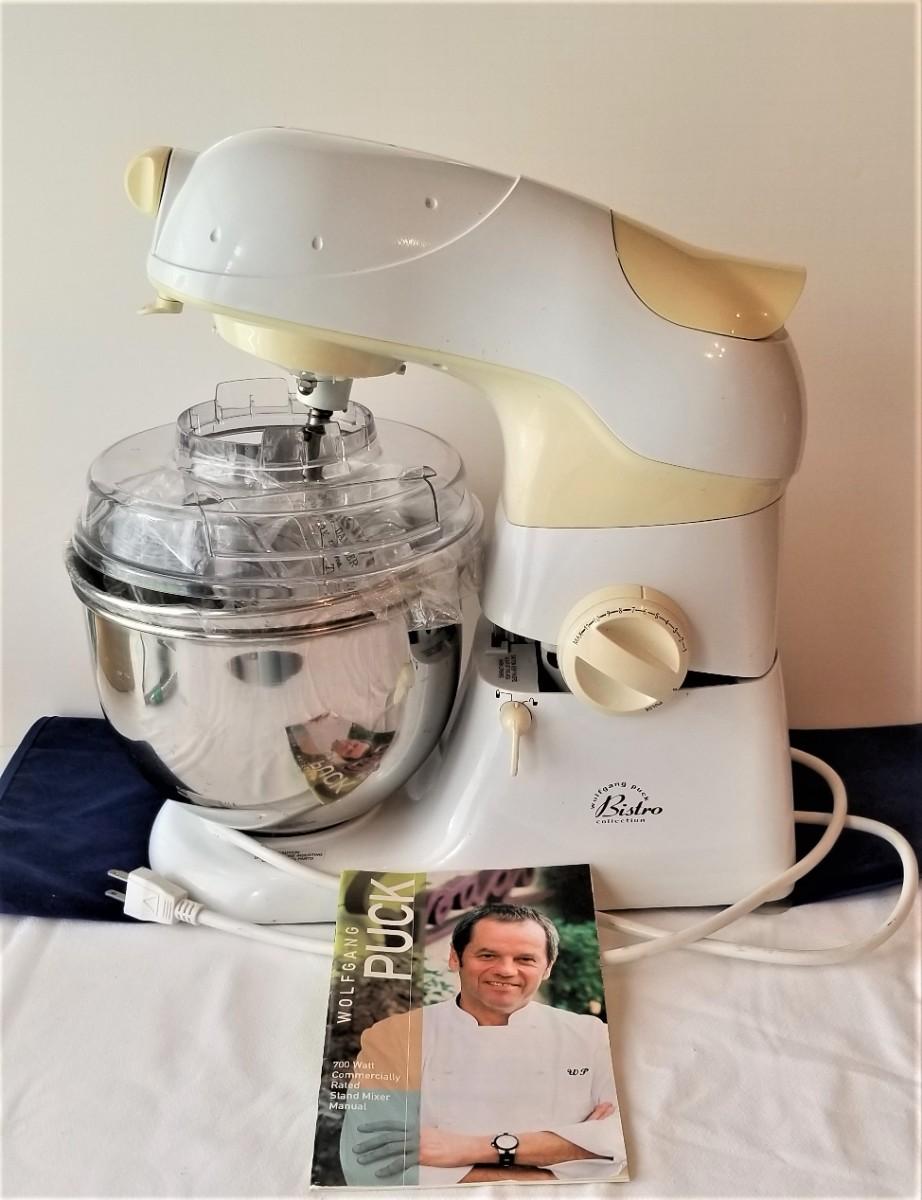From the Bistro collection, this Wolfgang puck stand mixer is commercially rated - 3 attachments - only gently used. You get all you see here. Works.
