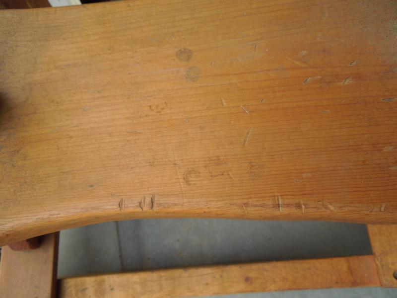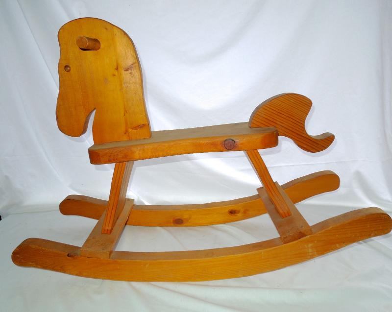 35" L x 24" H solid wood rocking horse. Varnished. Has small dents in seat. another sold separately.