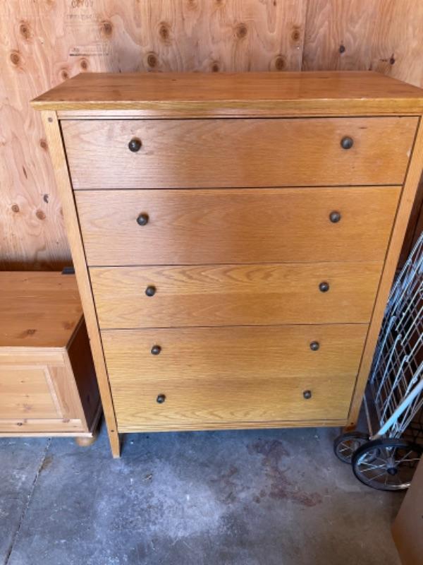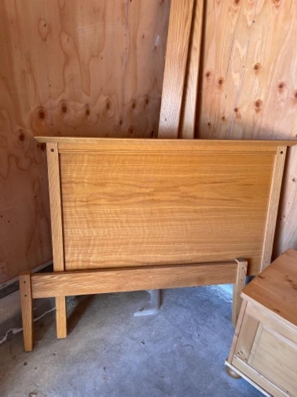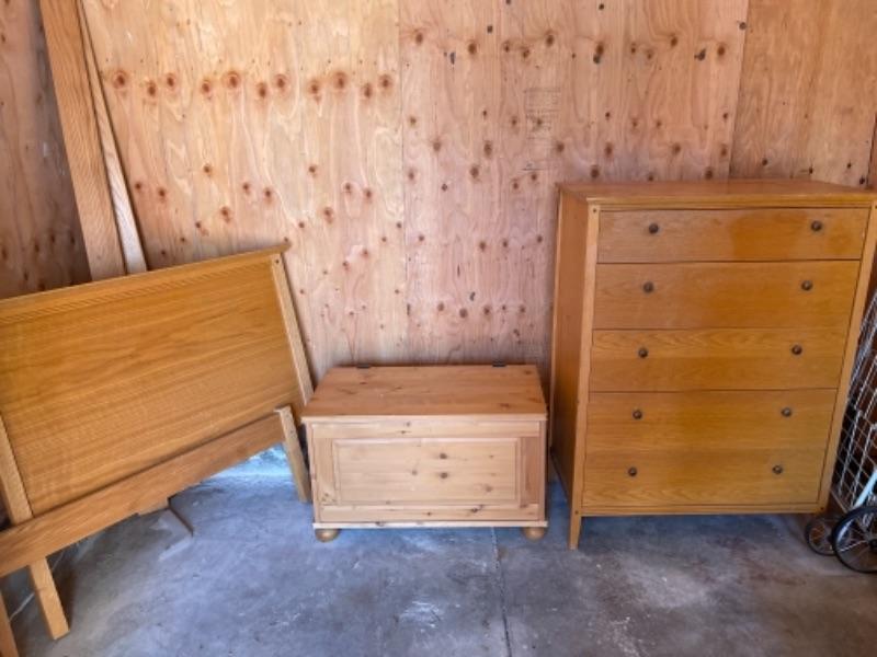 Lot 181G. Twin bed with 5-drawer dresser (34”W x 19”D x 46”T) and chest (31-1”/2W x 19”D x 19”T)--$45