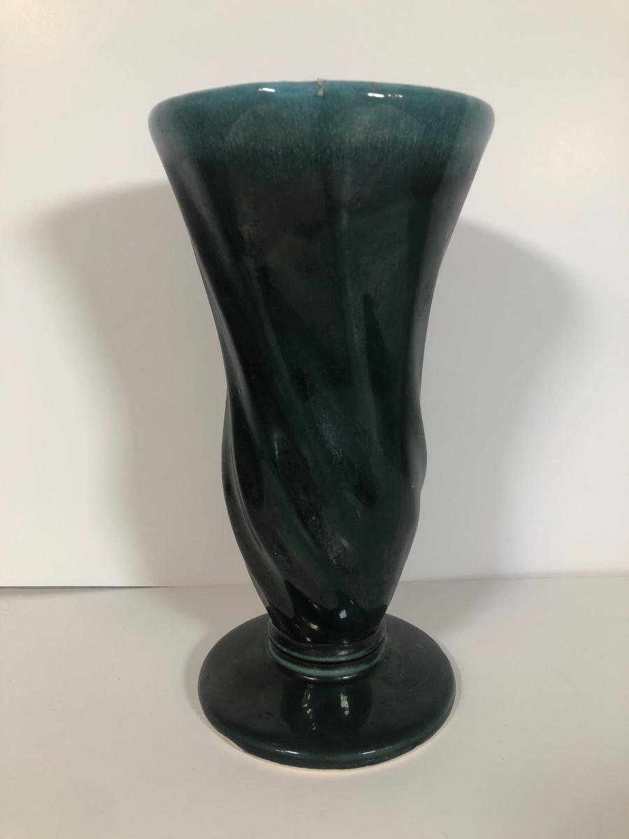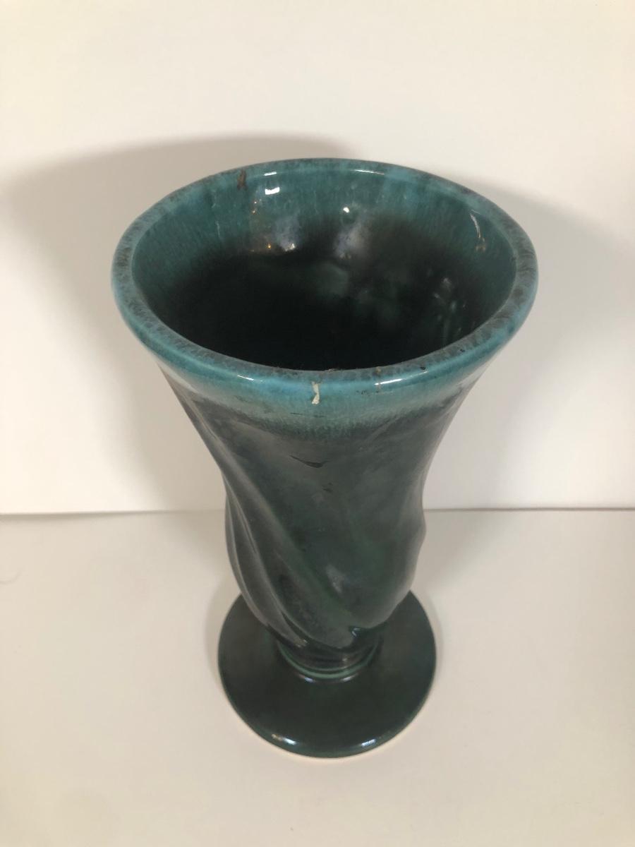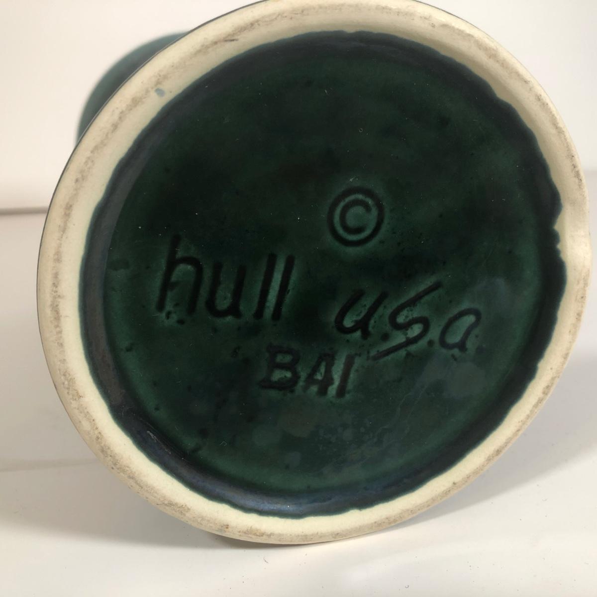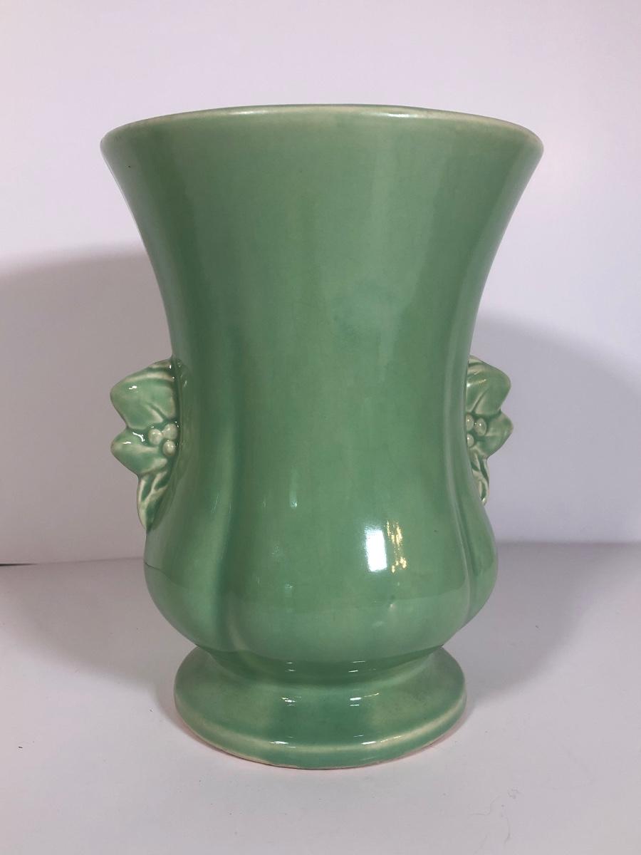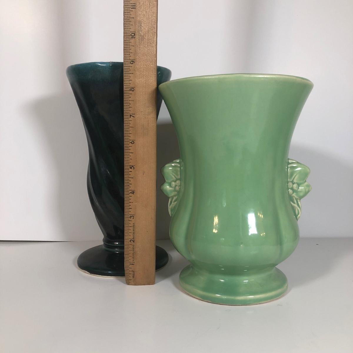 LOT 181L: Vintage Vases - Hull USA B41 MCM Green Drip Glazed Vase & Light Green Art Deco Vase (unmarked)