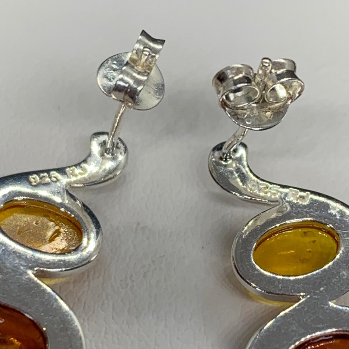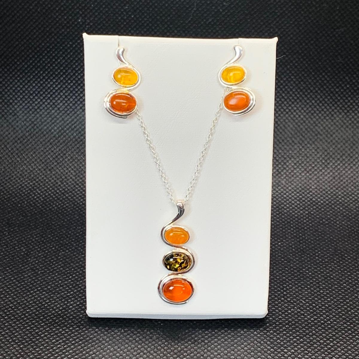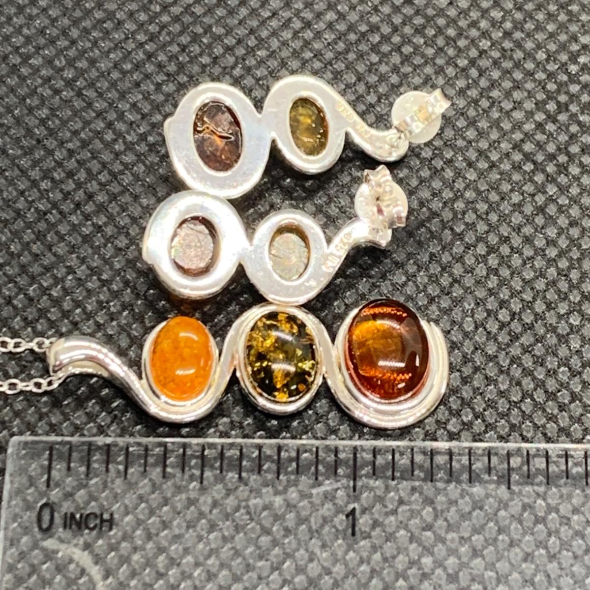 Lot 182: Sterling Silver Tri Color Amber Stone Necklace 18" & Sterling Silver Amber Stone Earring