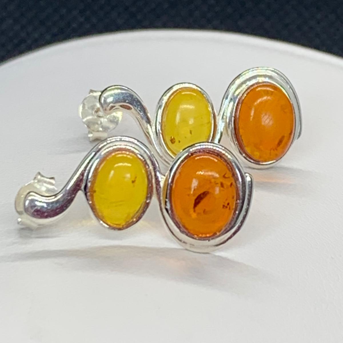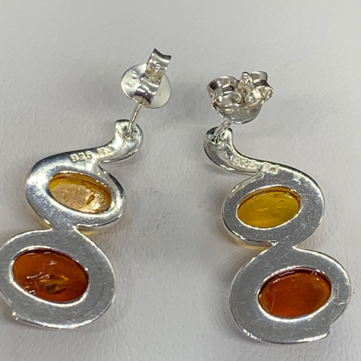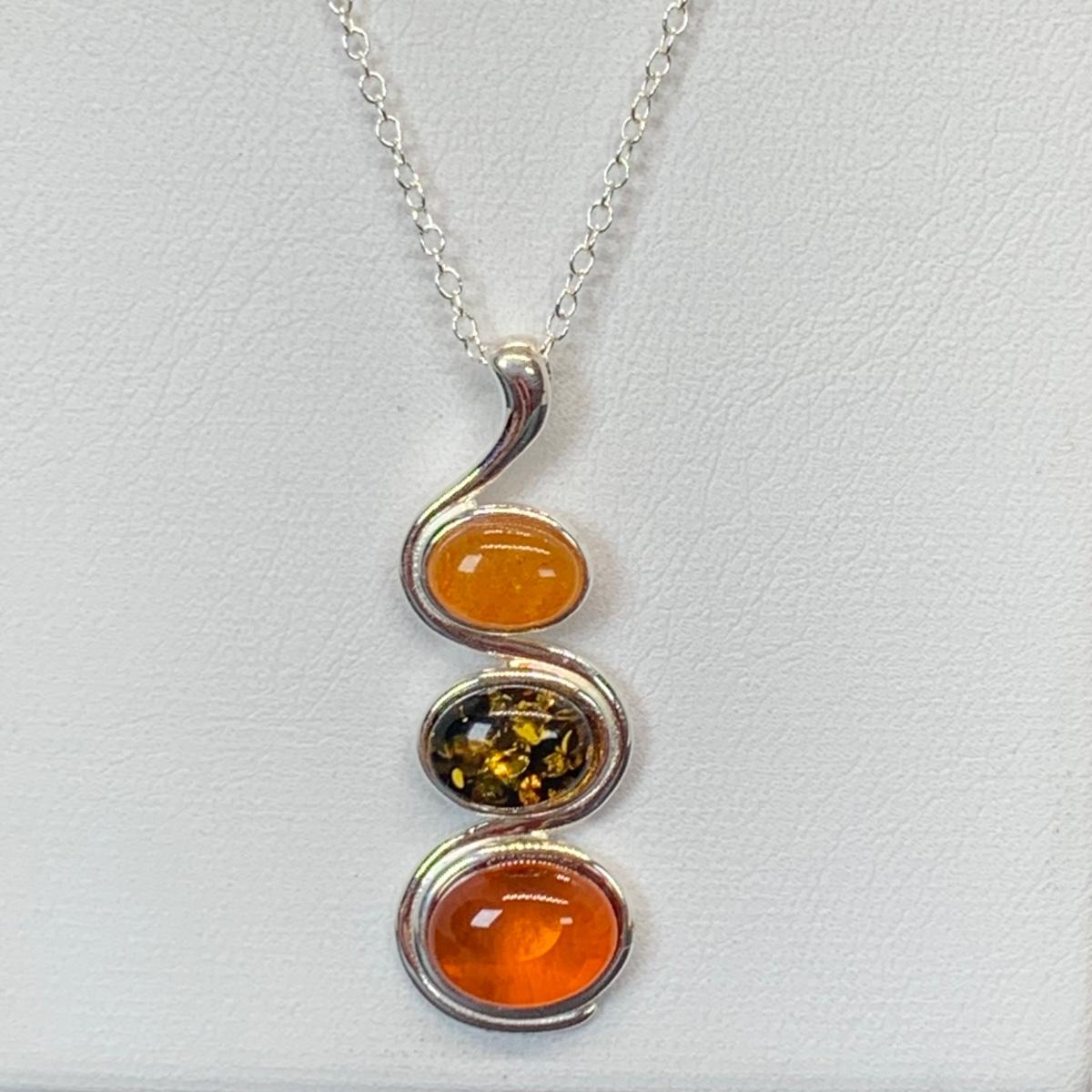 Lot 182: Sterling Silver Tri Color Amber Stone Necklace 18" & Sterling Silver Amber Stone Earring