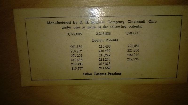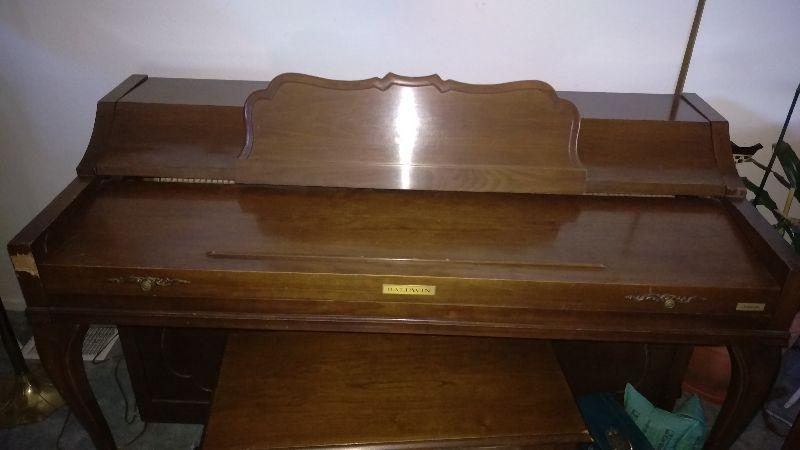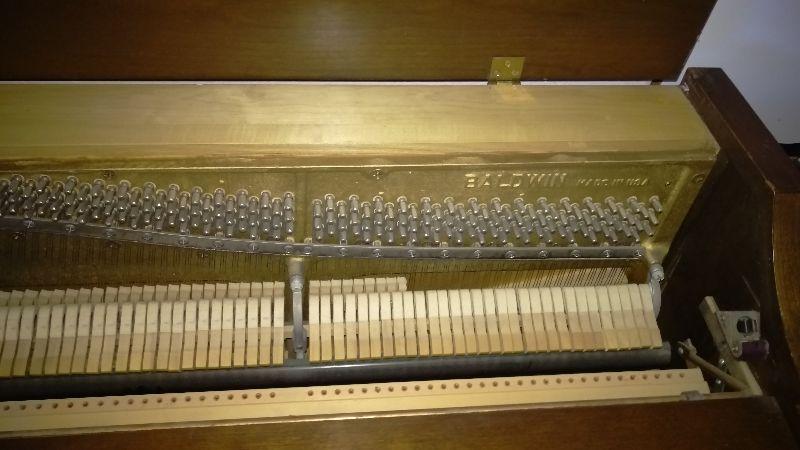 1972 Upright Baldwin Acrosonic Piano with bench. Serial # 978857. In decent condition. There are some cosmetic issues shown in photos. Was recently examined by piano technician in July and there were no issues found with the sound board or other mechanisms.