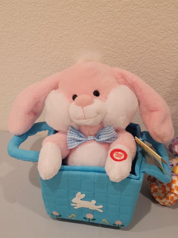 Lot 182: New Animated Bunny in a Basket and Plush Bunny