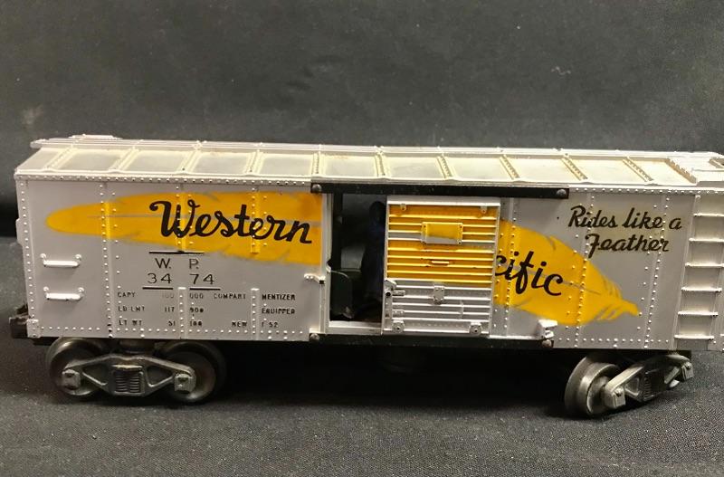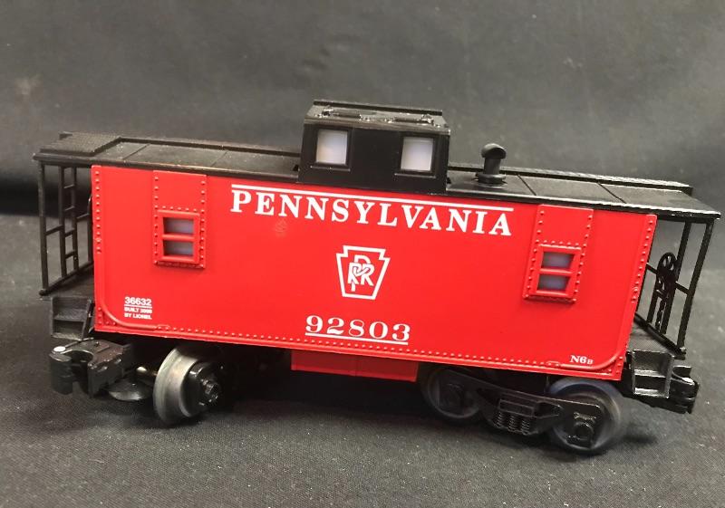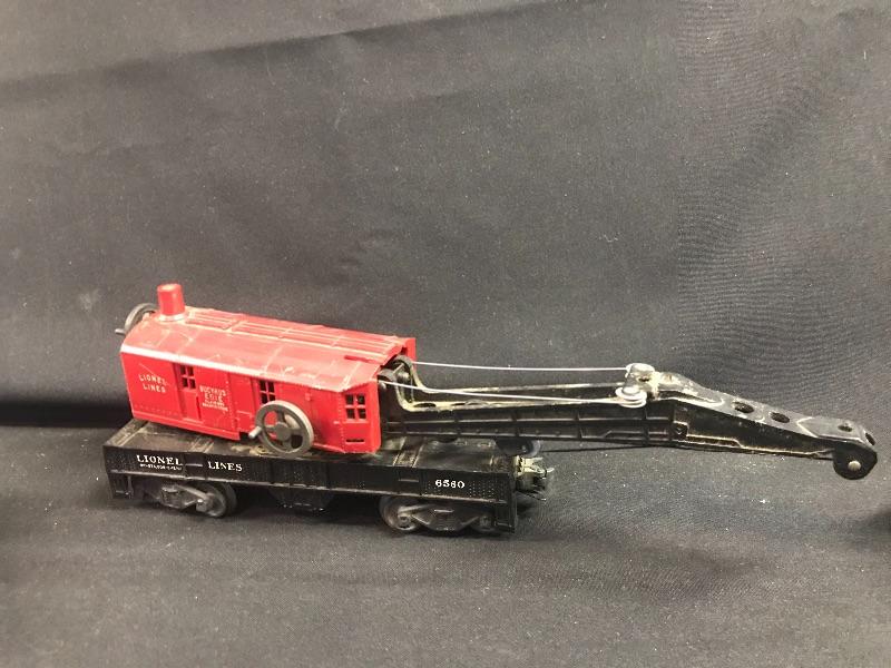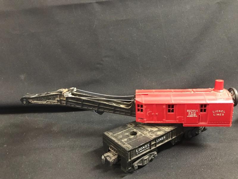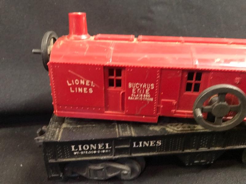 Lionel #6560 Bucyrus Erie crane car in red, a Lionel Post War #2056 4-6-4 steam locomotive, Jersey Central Lines passenger car, Lionel Postwar Western Pacific O Gauge Box Car, Lionel Pennsylvania Rail Road 92803 Red Caboose, and a Lionel Postwar O Ga. #336155 Log Car. Please see all pictures for content of the lot, condition of the lot, and measurements if taken. Pictures are the best representation of the items listed and items are untested unless indicated in description. Thank you for looking and have fun bidding!