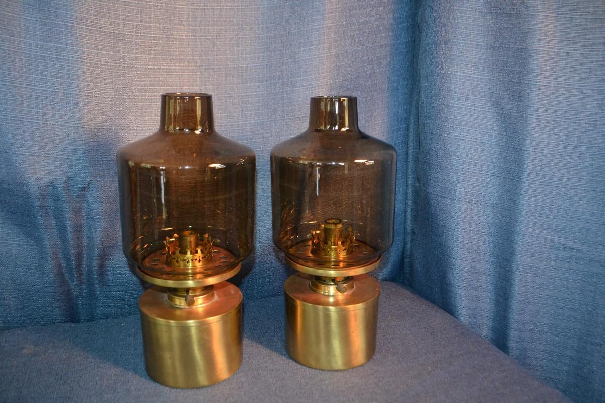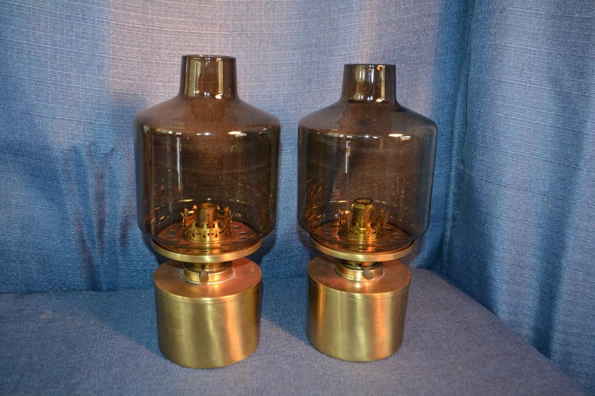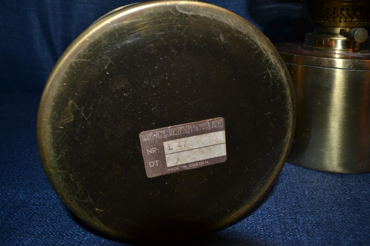 LOT 182 Vintage Hans Agne Jakobsson Markaryd Brass Oil Lamp With Green Glass Shade Made in Sweden
