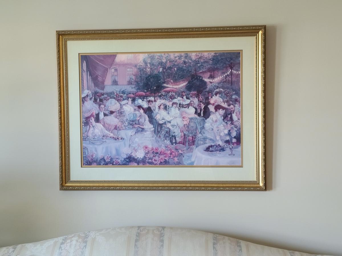 40x31 Print with Gold Framed. Please see all pictures as they are the best representation of the items in the lot, the condition of the lot, and will show measurements if taken. If purchasing furniture you must be able to move yourself with your own help, and truck. This is located on the first floor.