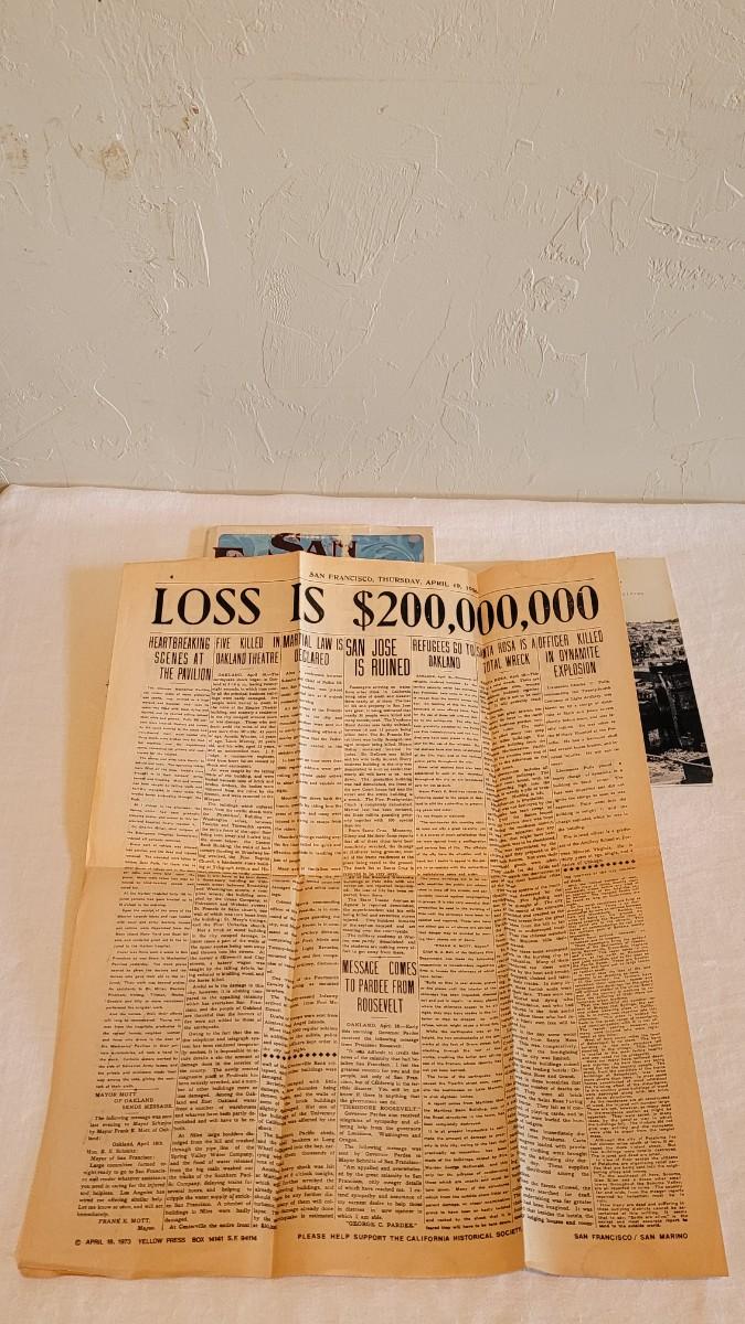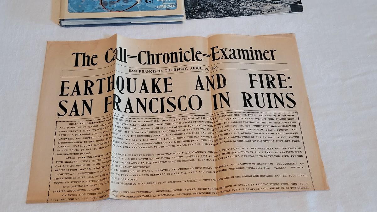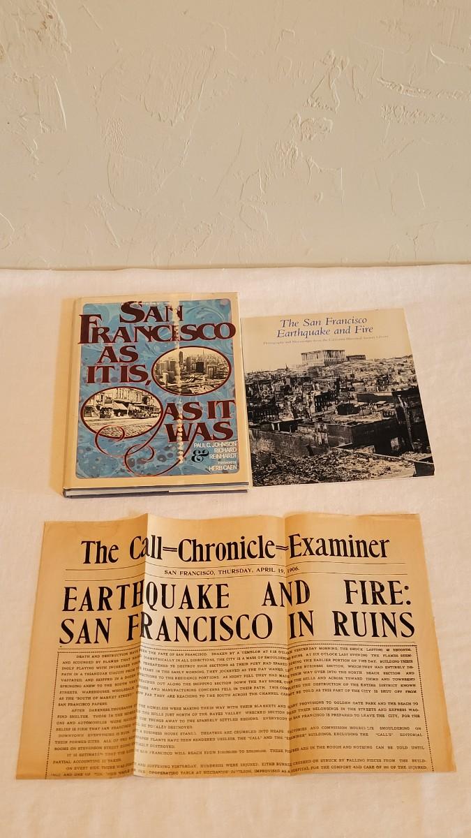 Lot 182: (2) Books about San Francisco and April 19, 1906 San Francisco Newspaper (from day after Great Earthquake)