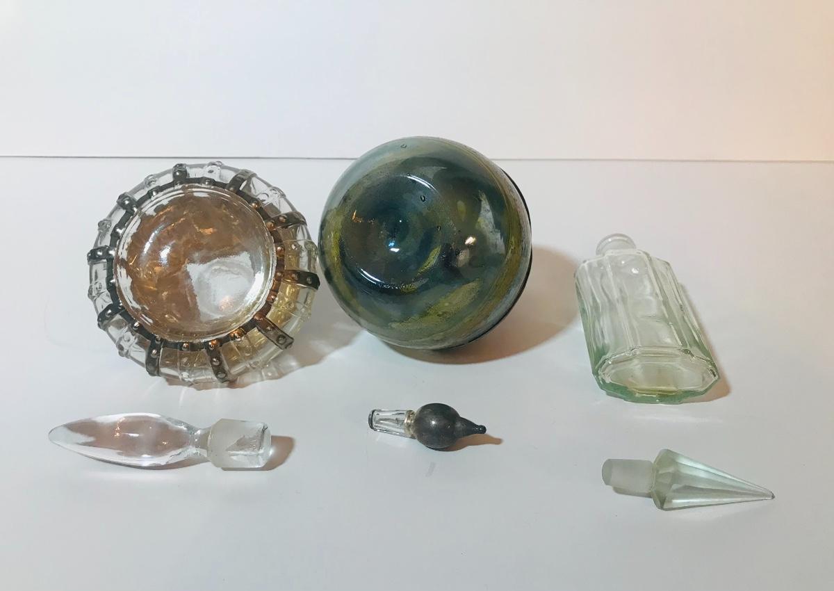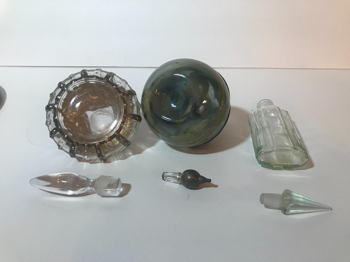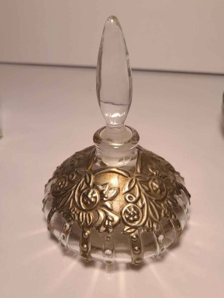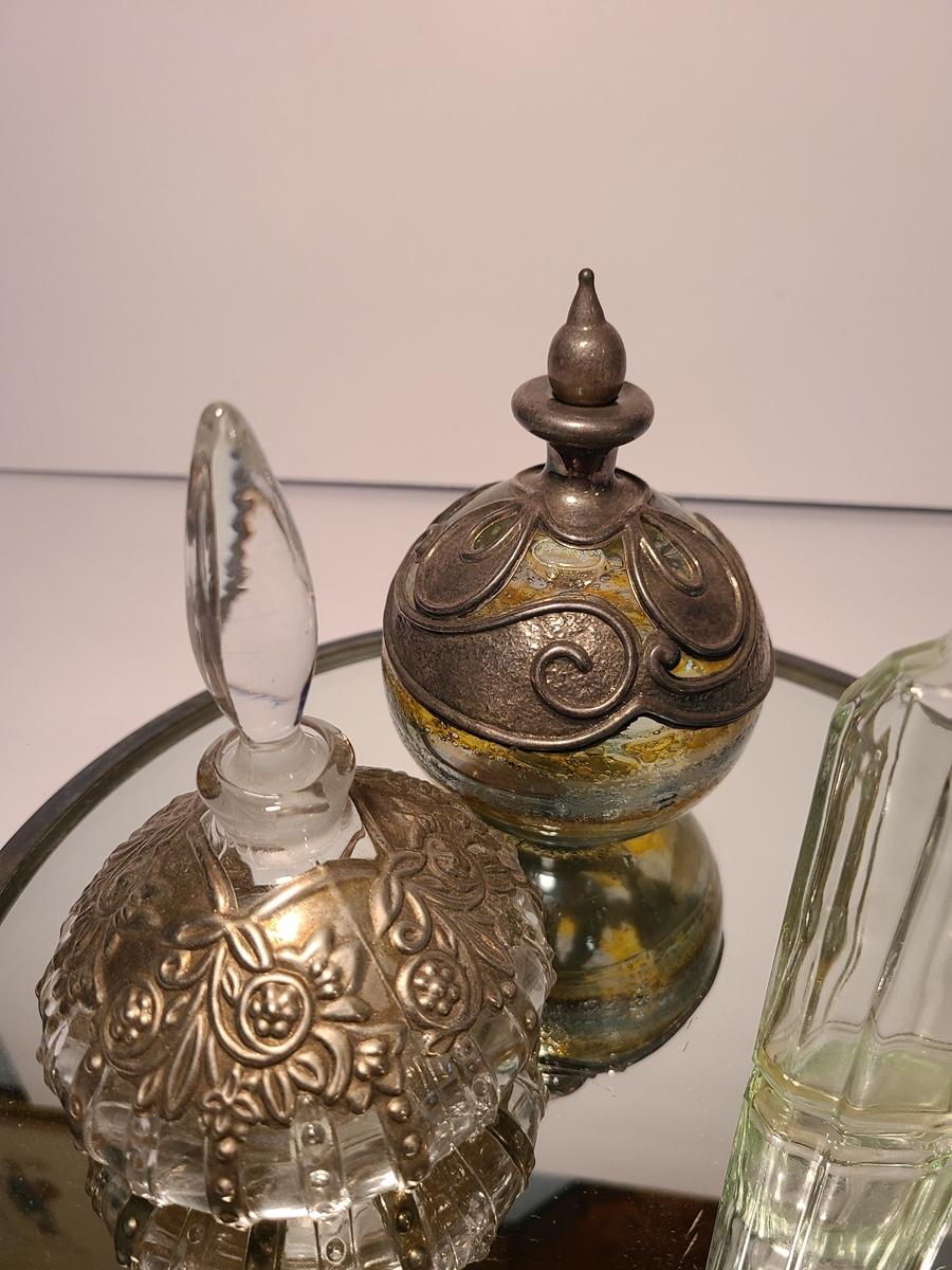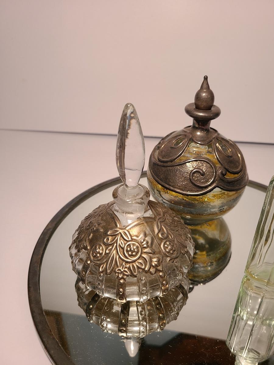 Glass perfume bottles, two with metal overlay. Mirrored vanity tray is also included. Please see all pictures as they are the best representation of the items. The pictures show condition, measurements if taken, and what is included in the lot. Due to the large amount that we photograph and the time frame, we are not always able to take measurements. All items unless noted, are pre-owned and have been used. If you purchased furniture, you must bring help. We do not allow one person to carry large furniture out on their own. Bring help, tools and a truck for the safety of our client’s homes, and your personal safety. Company policy. Thank you.