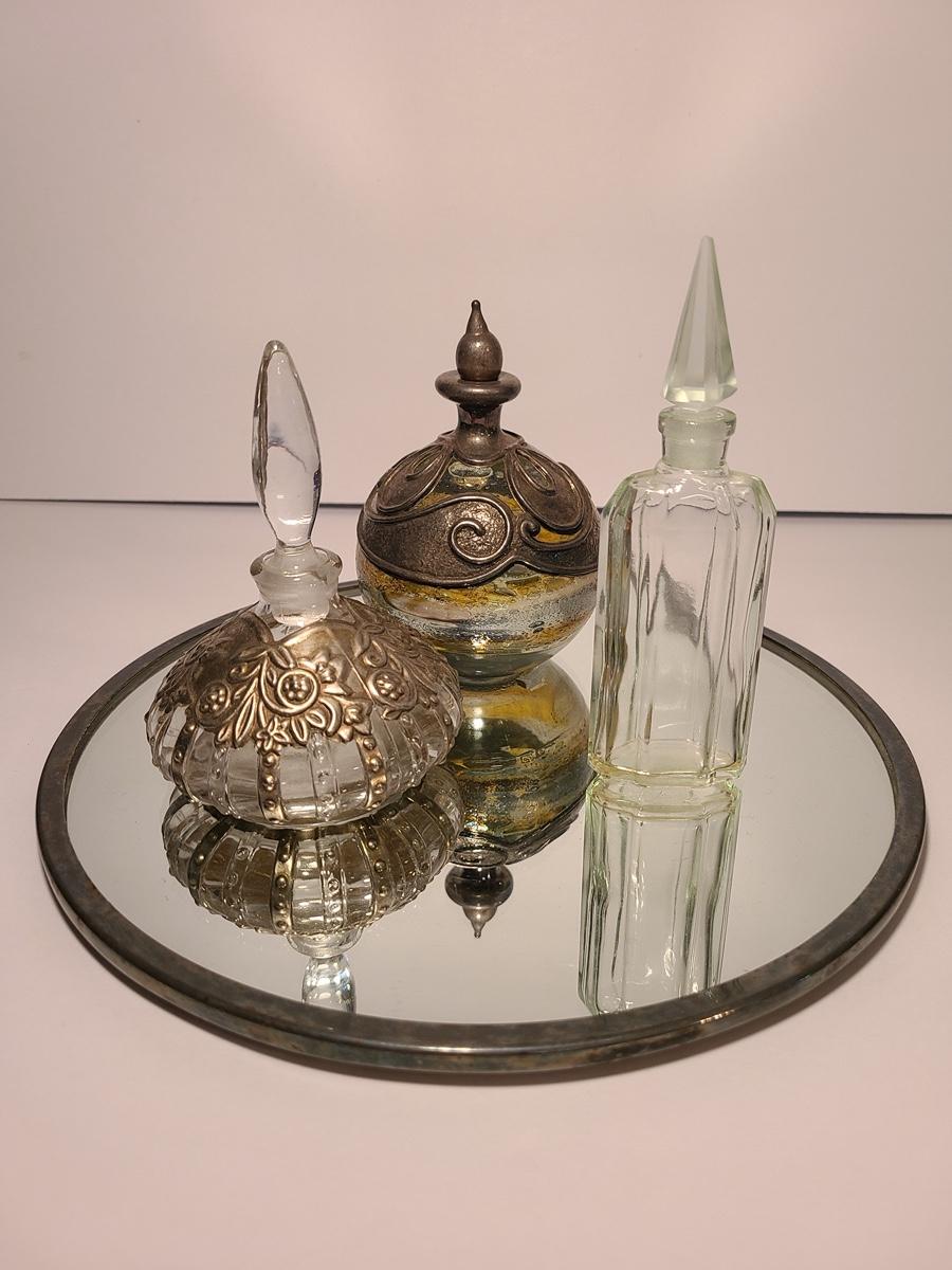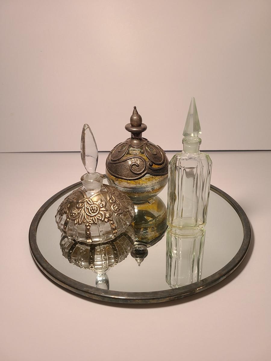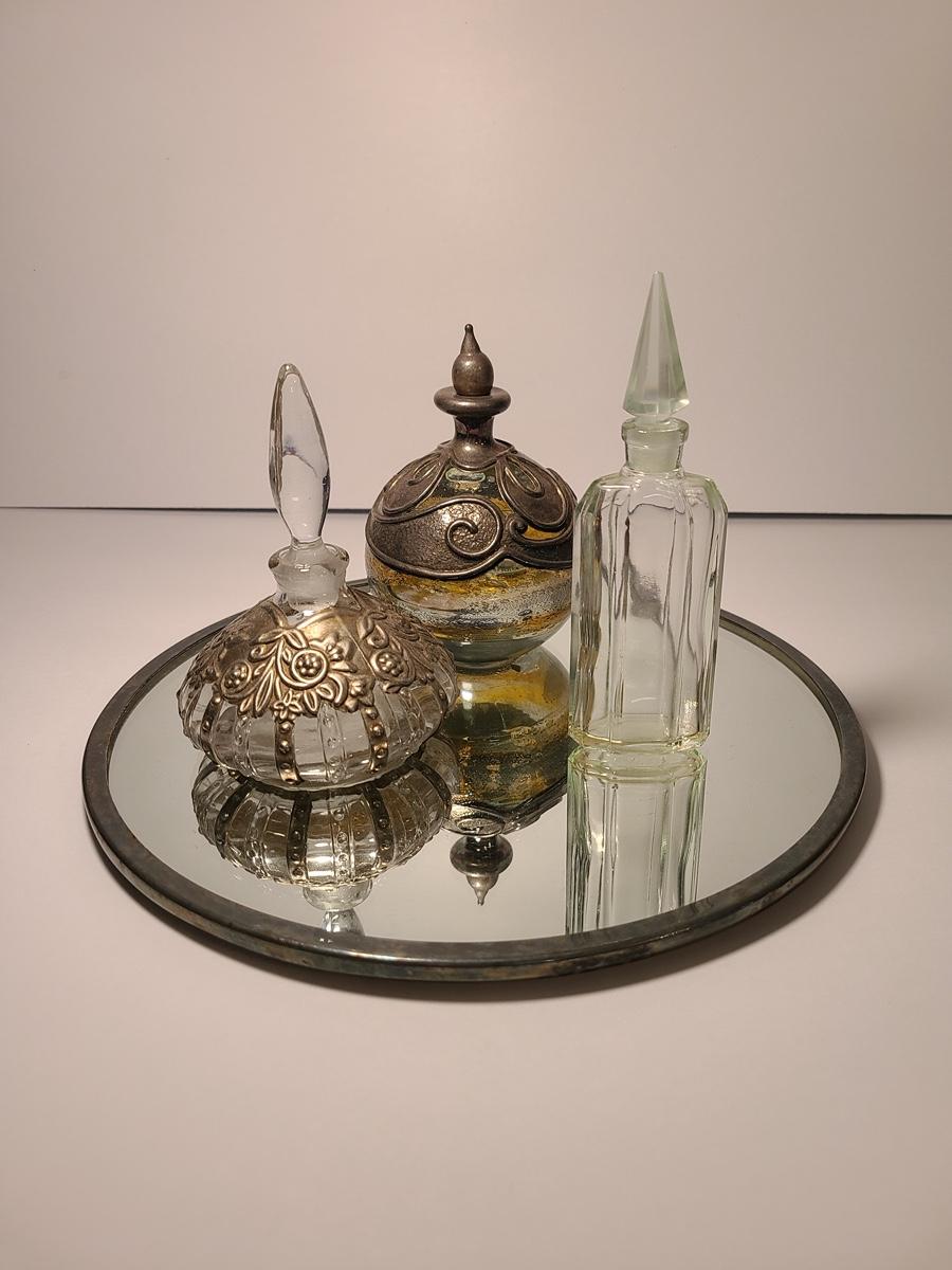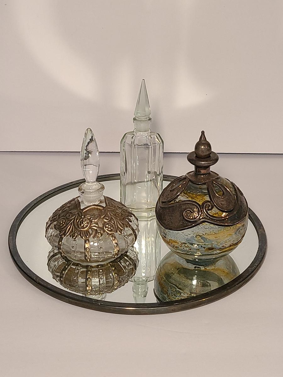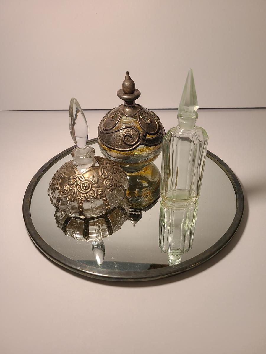 Lot 182: Vintage Perfume Bottles & Mirrored Vanity Tray