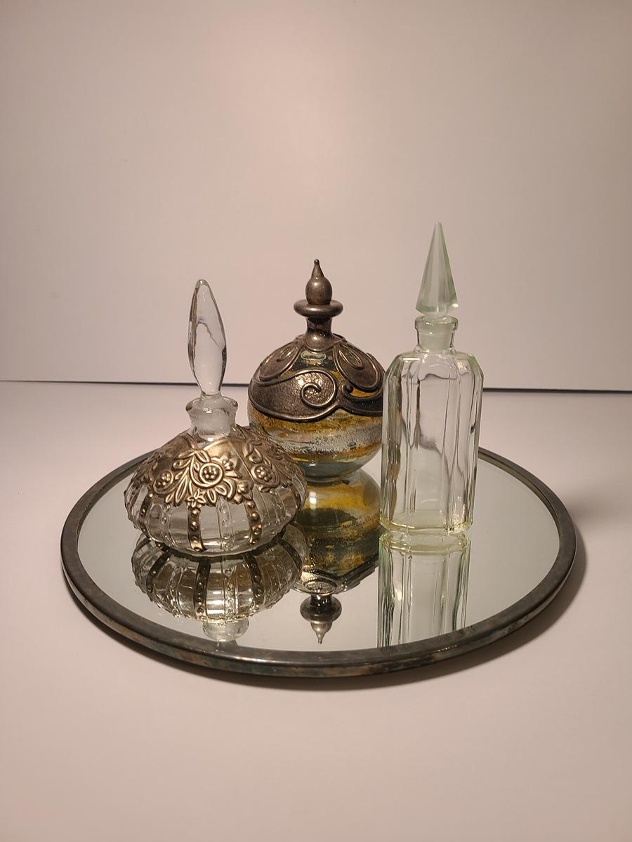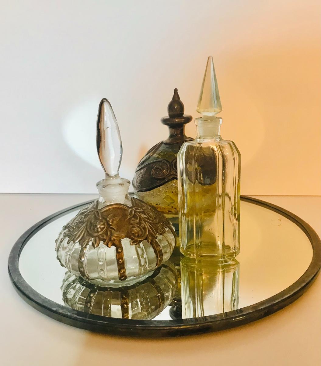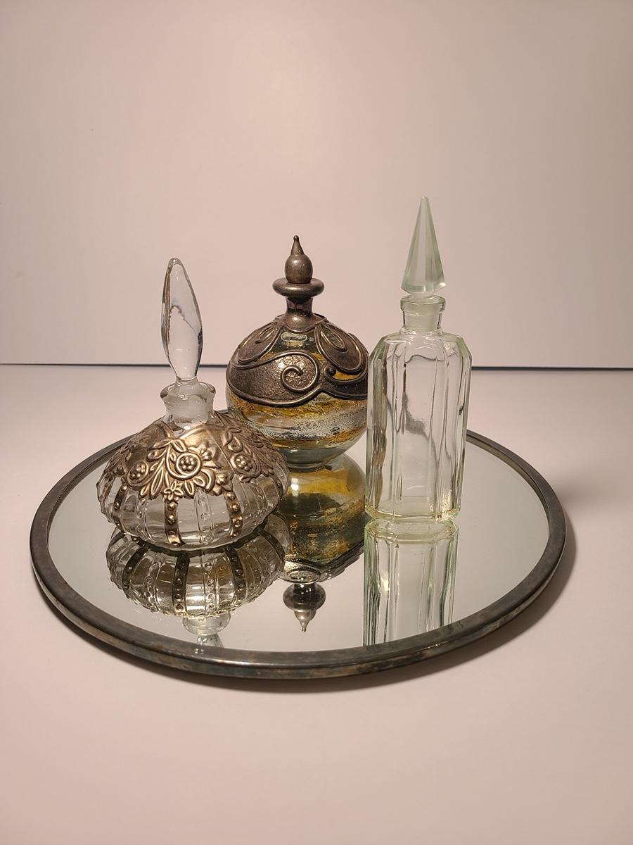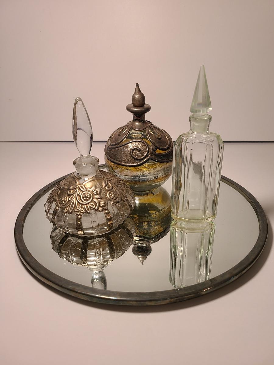Lot 182: Vintage Perfume Bottles & Mirrored Vanity Tray