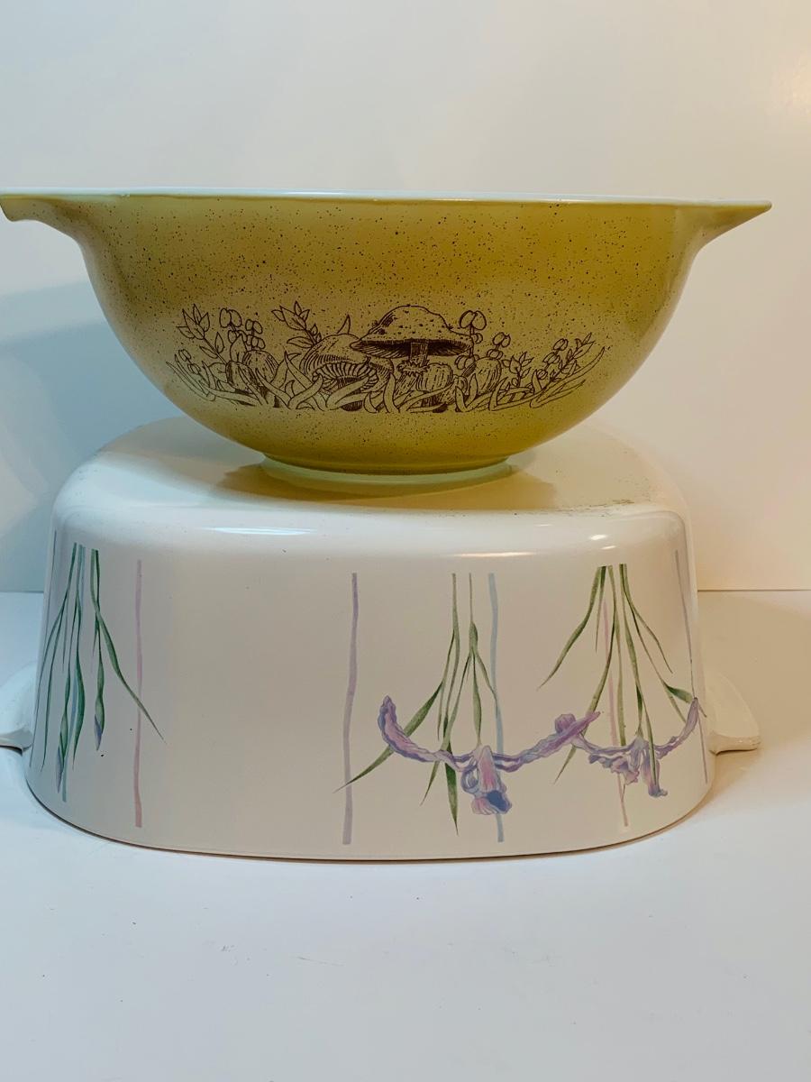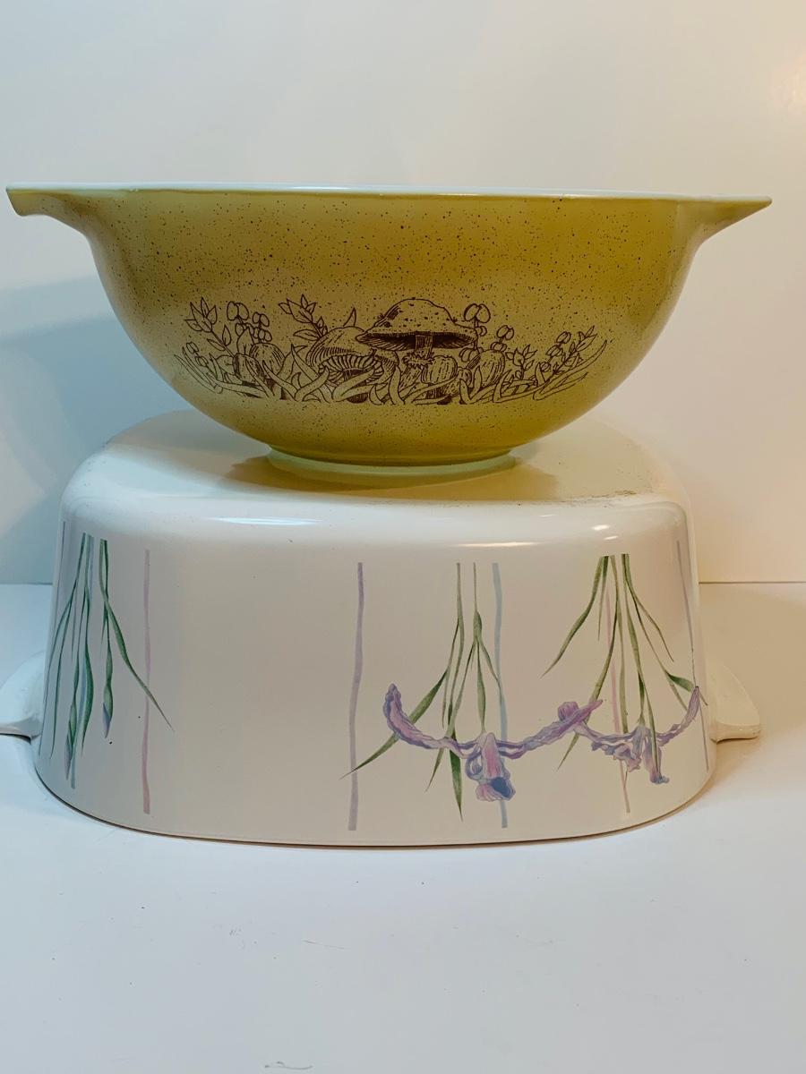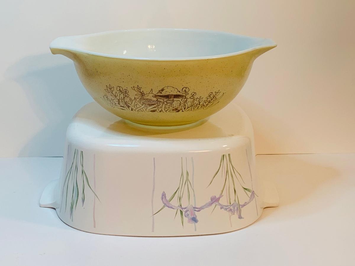 Lot 182: NIB Corning Ware Ramekins, Vintage Mushroom Pyrex & Corning Ware Casseroles