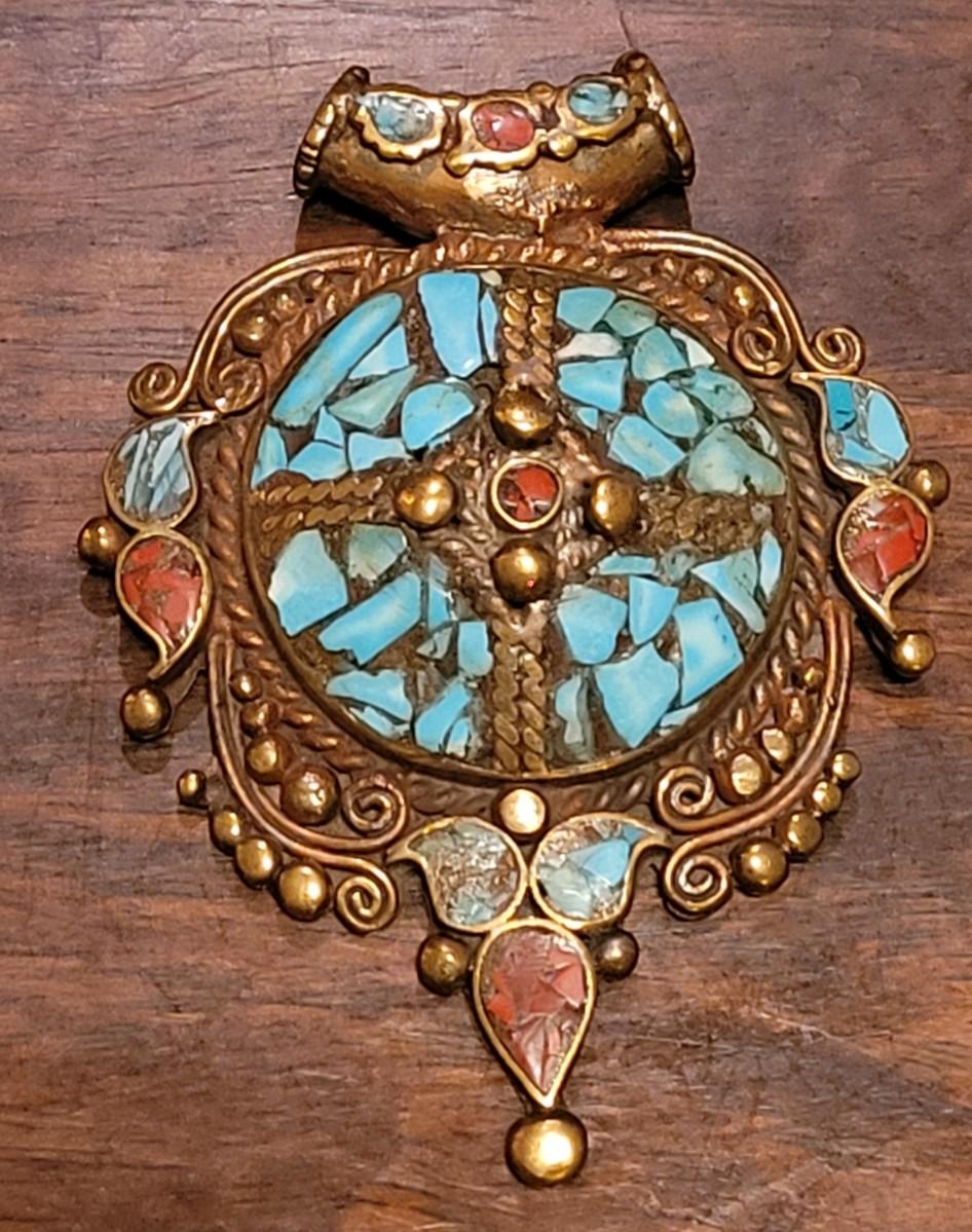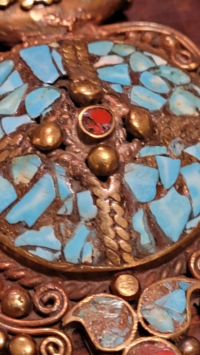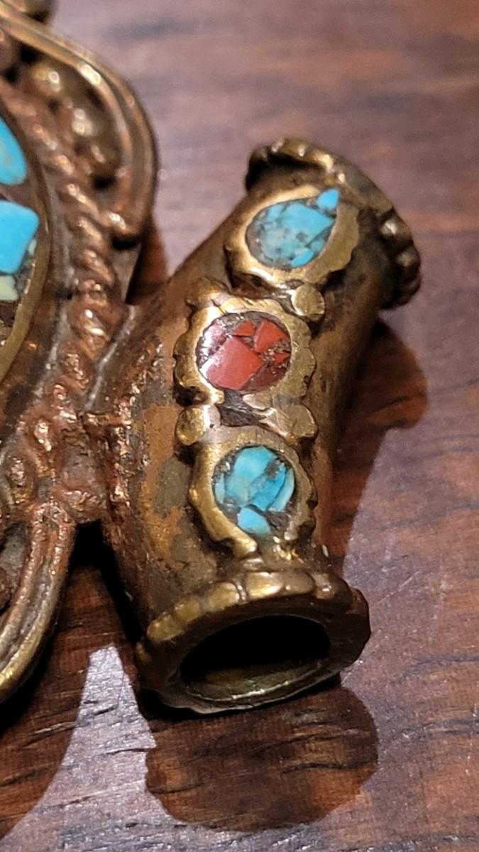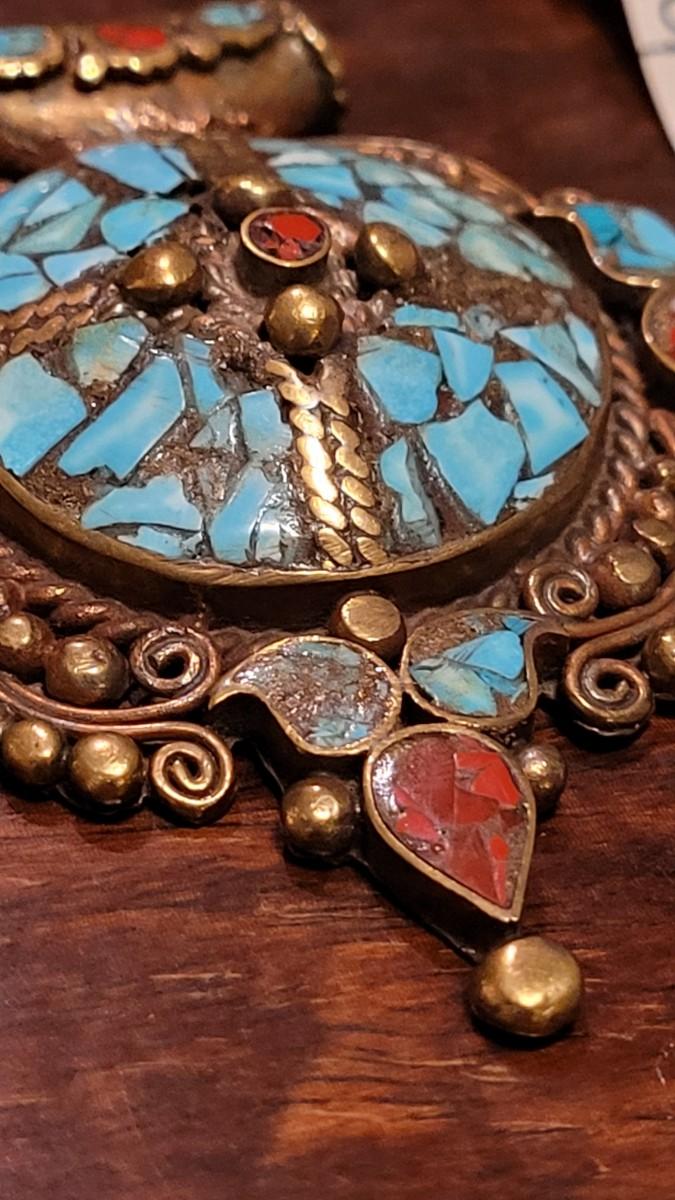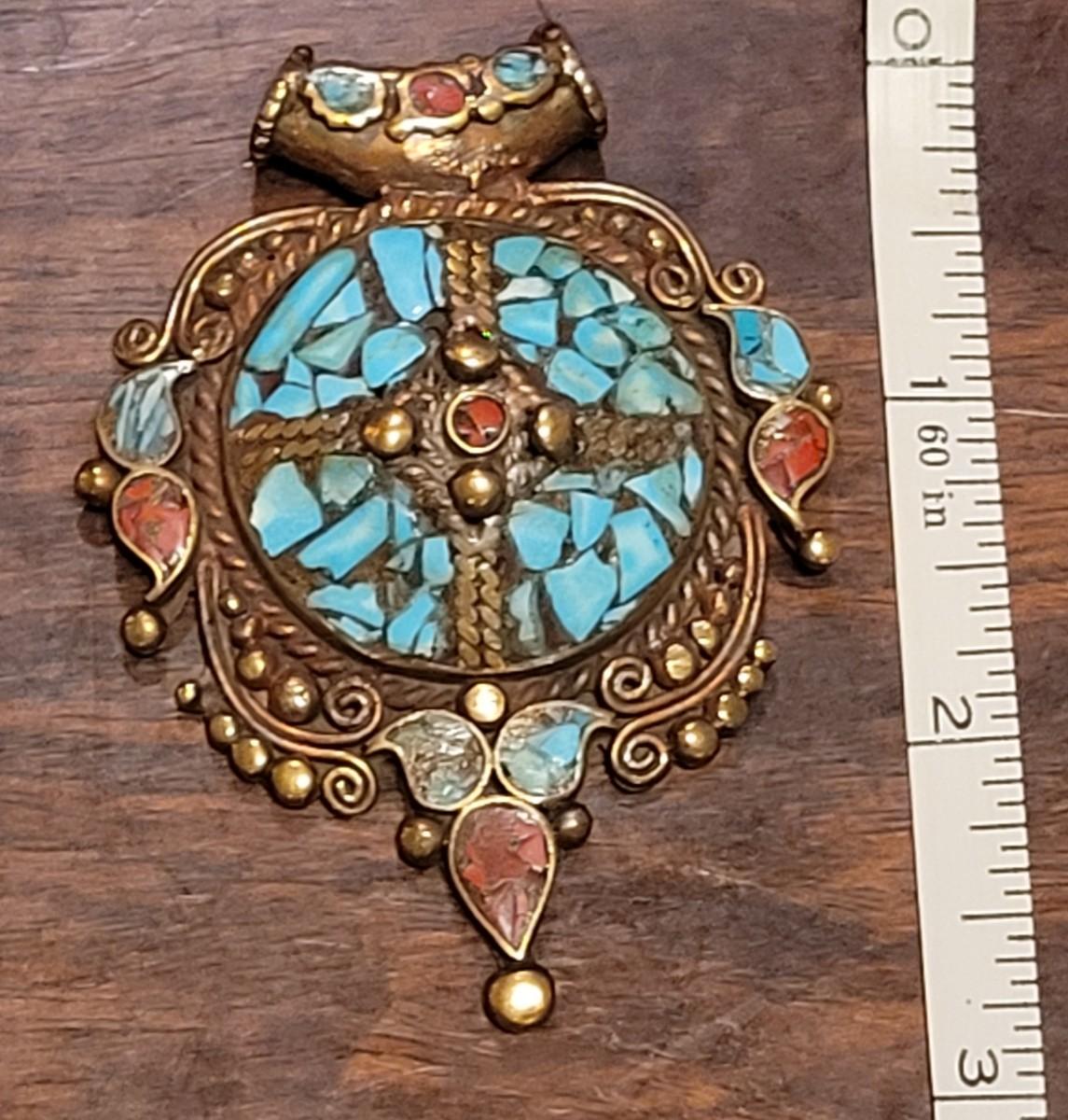Lot 182: Vintage Copper, Turquois and Coral Necklace Slide Pendant