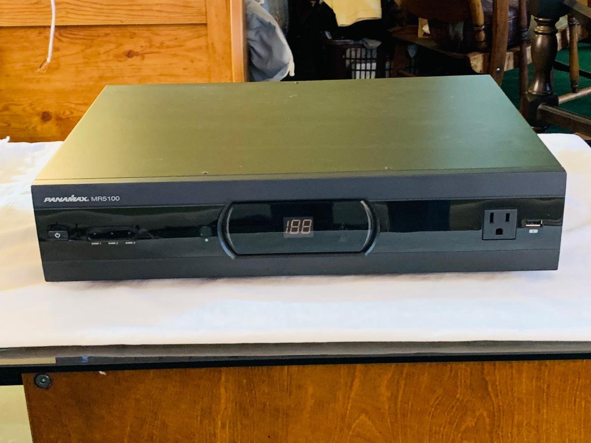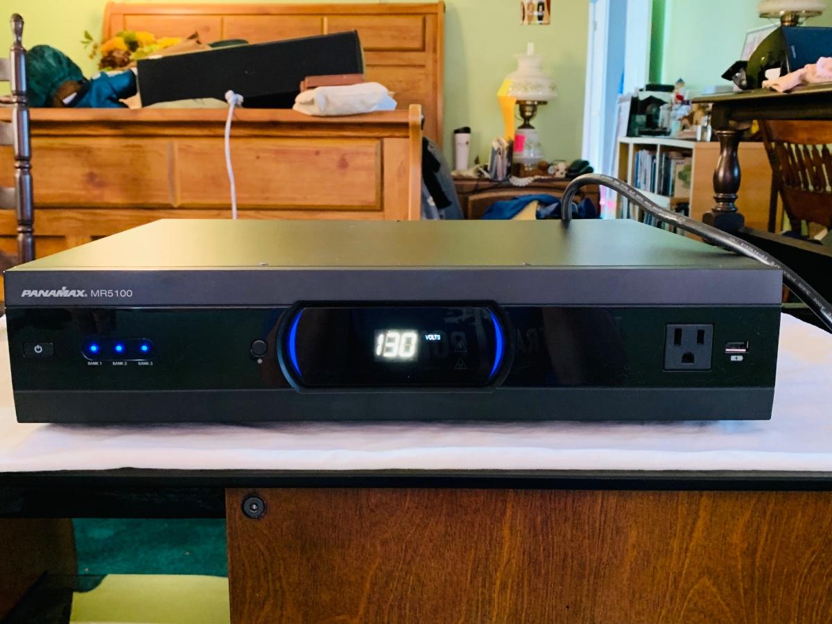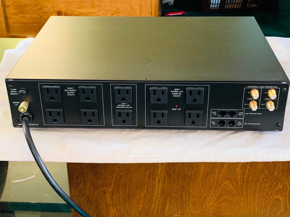 11 Outlet Power Management, specifically designed and engineered to provide protection, filtration and power monitoring for your home theater system. Powered on.