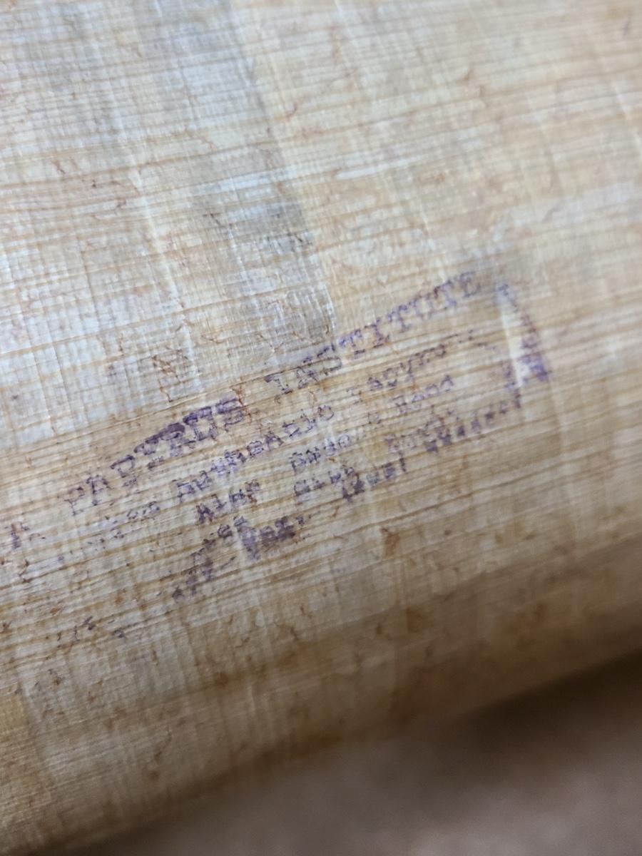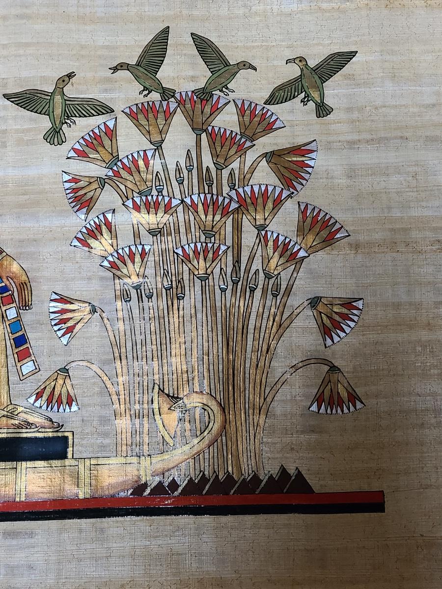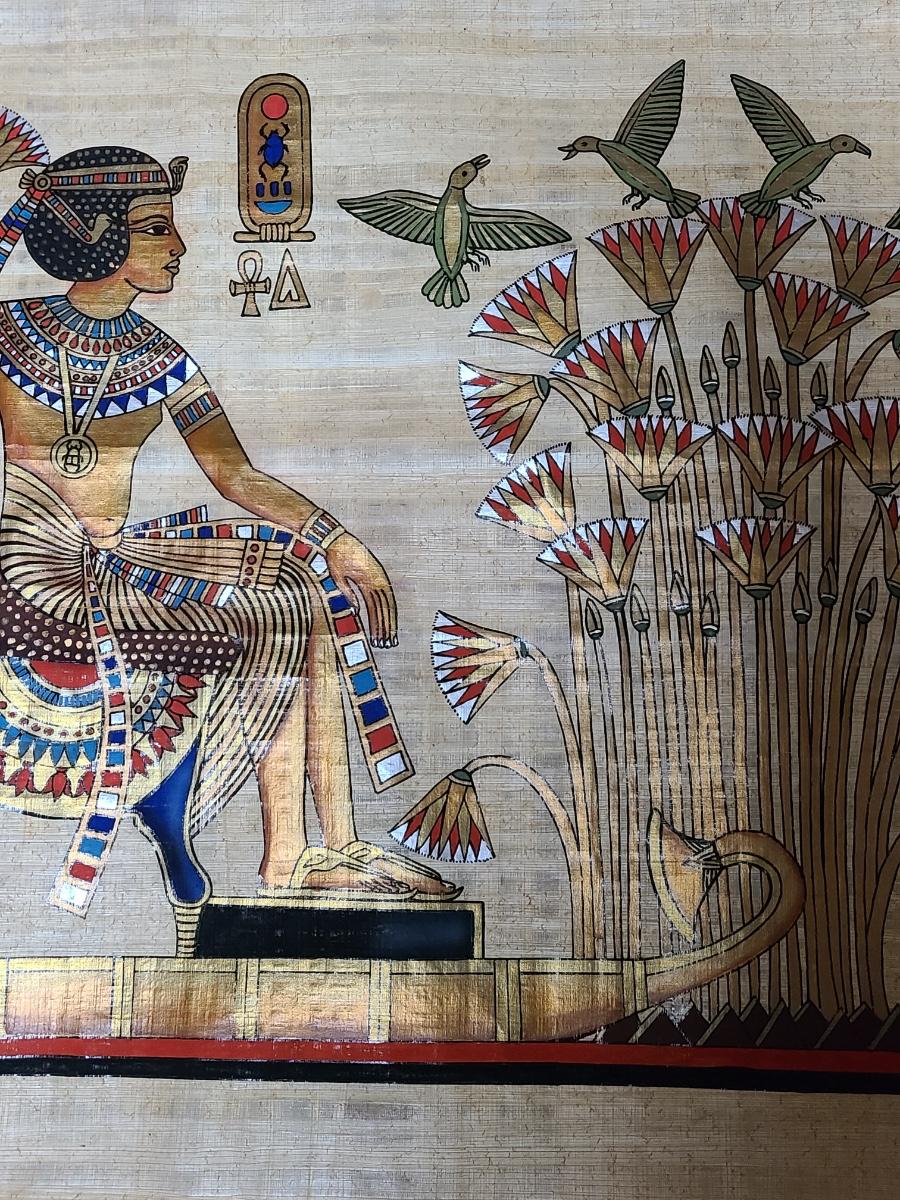 Large, artist signed painting on papyrus. The back has a marking on it, that looks like it reads the Papyrus Institute with an address. This came rolled in a tube as seen in the pictures. Would look amazing framed in black or gold! Please see all pictures as they are the best representation of the items. The pictures show condition, measurements if taken, and what is included in the lot. Due to the large amount that we photograph and the time frame, we are not always able to take measurements. All items unless noted, are pre-owned and have been used. If you purchased furniture, you must bring help. We do not allow one person to carry large furniture out on their own. Bring help, tools and a truck for the safety of our client’s homes, and your personal safety. Company policy. Thank you.
