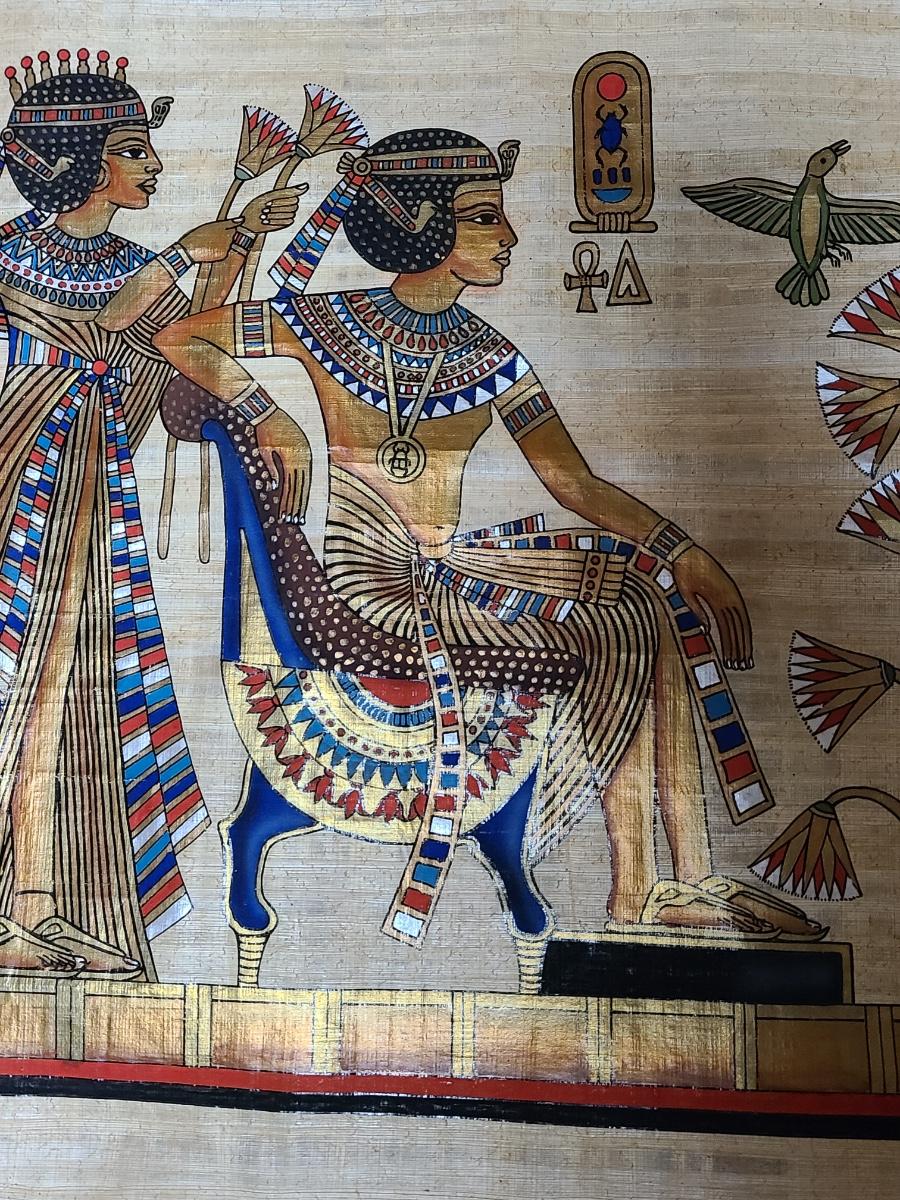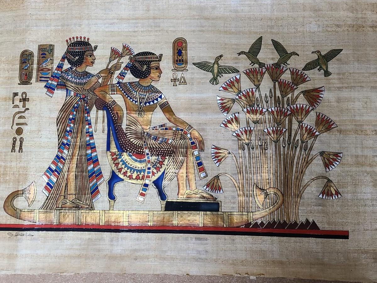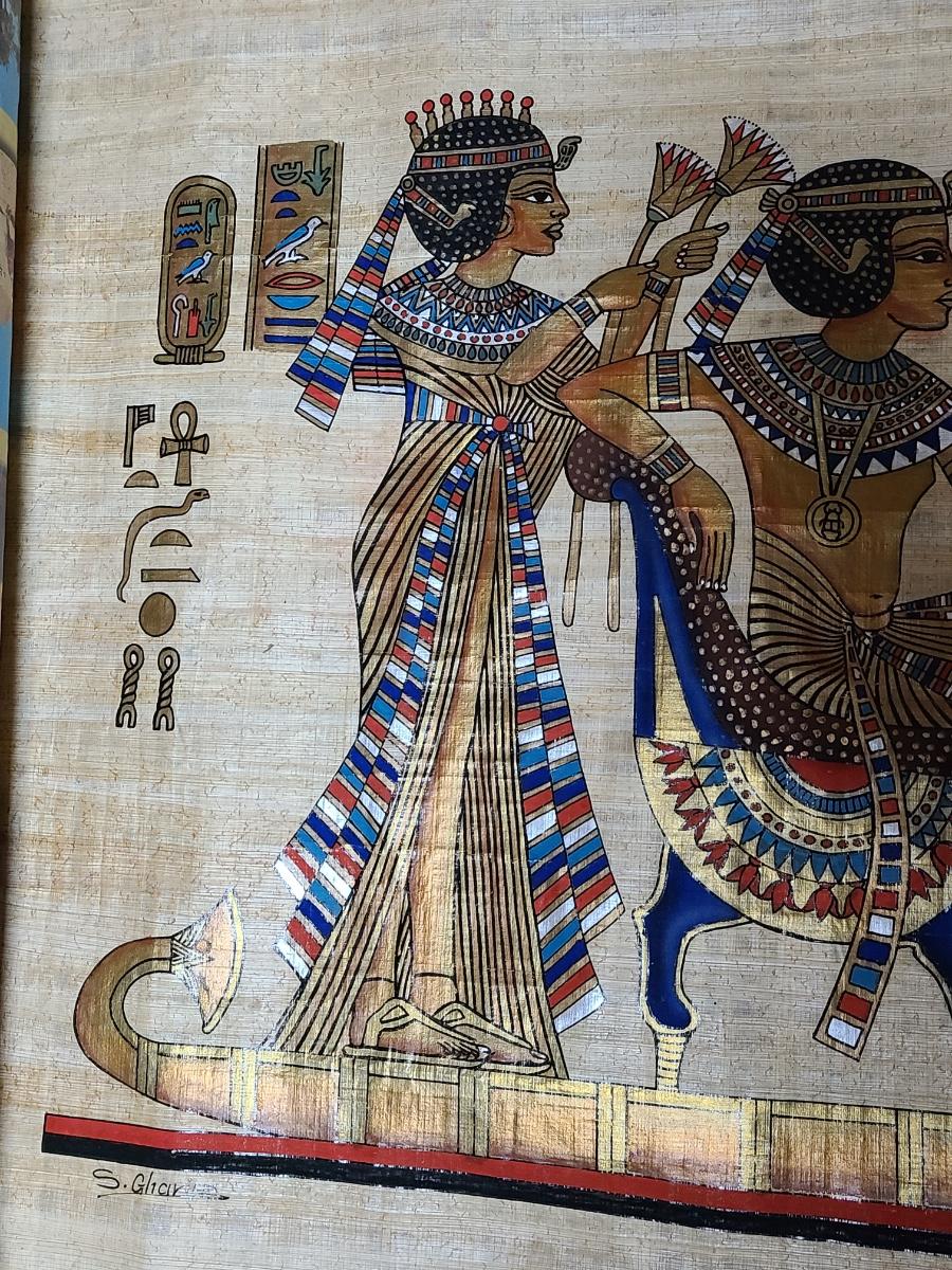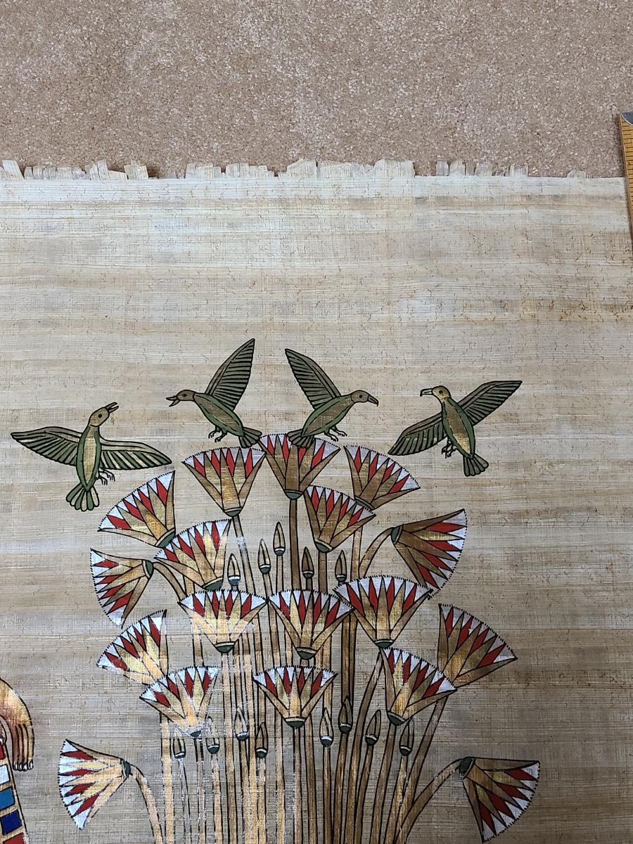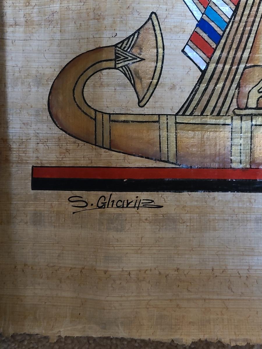 Lot 182: Vintage Artist Signed Egyptian Painting On Papyrus (35x24 inches)