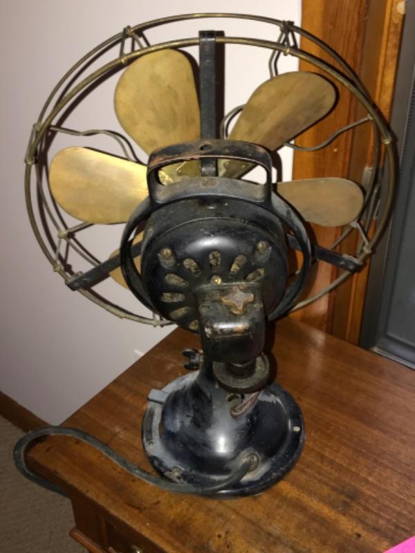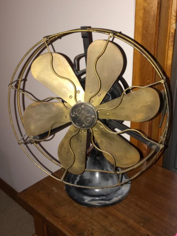 Antique GE electric fan with brass blades. Cord needs to be replaced due to dry rot from age