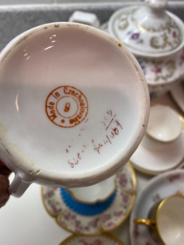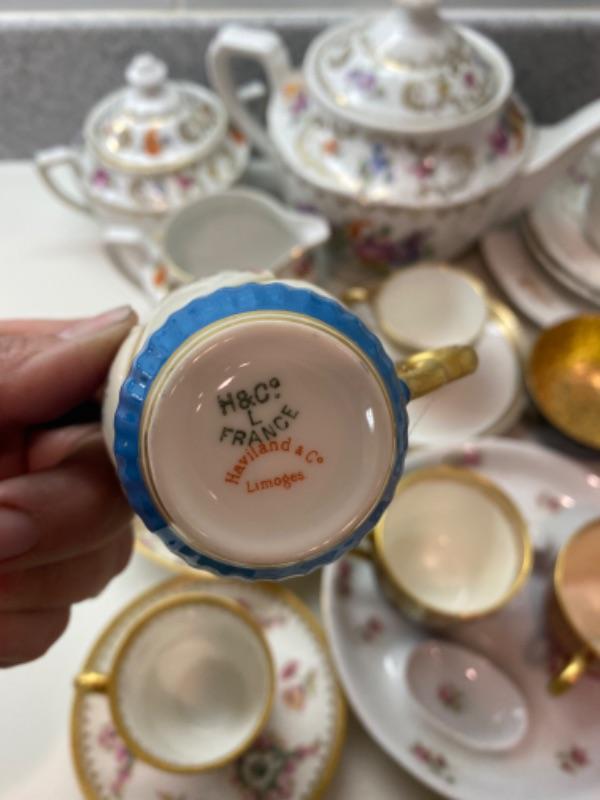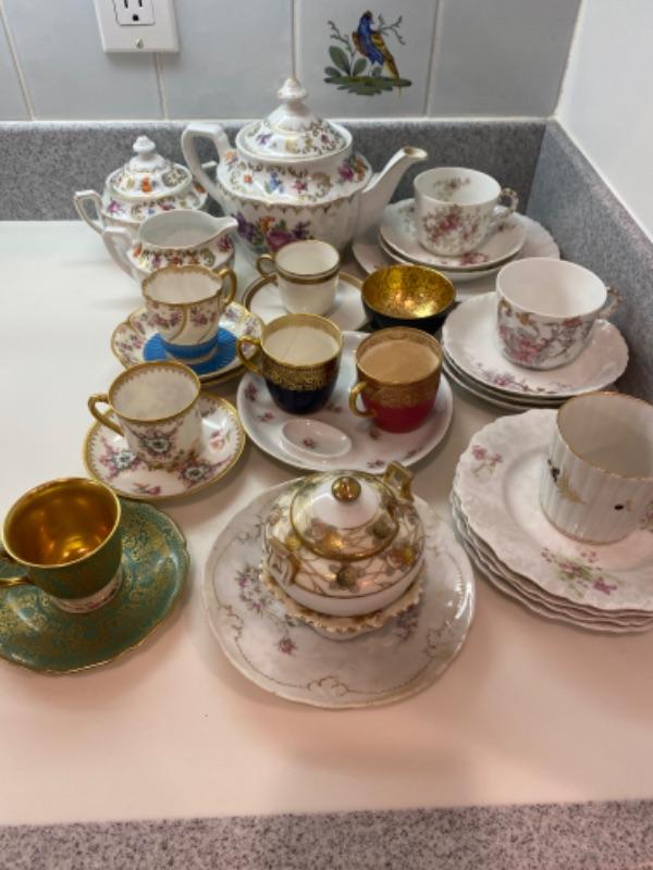 Lot of Misc. Antique Limoge China cup and saucers and demitasse cup and saucers with Czechoslovia tea set
