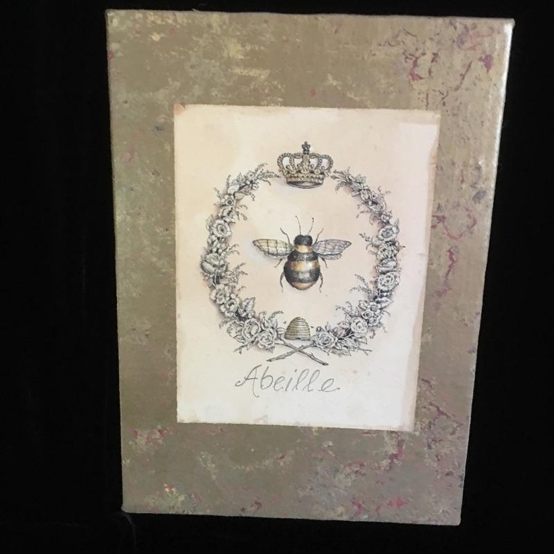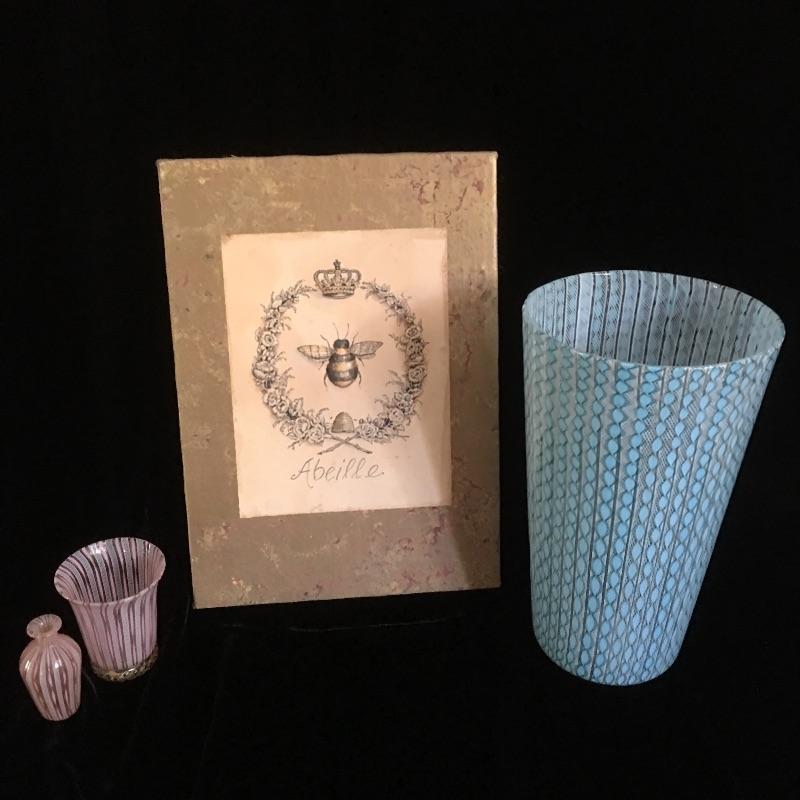 Funky glass vase with two smaller pieces and Queen bee artwork.