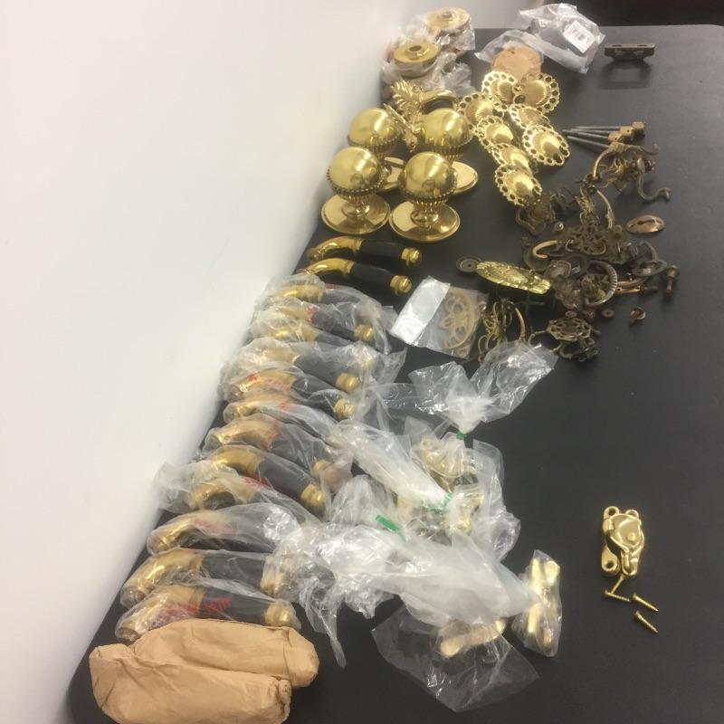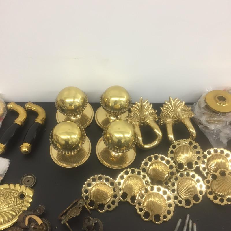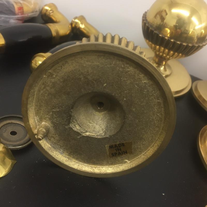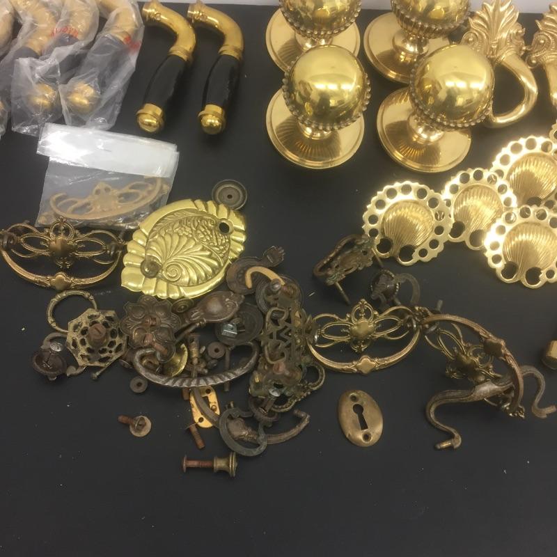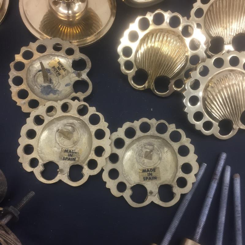 Caboodles of brass. Most are from Spain including handles,knobs,pulls and more. Make your house look like a villa. Handles measure 5” long