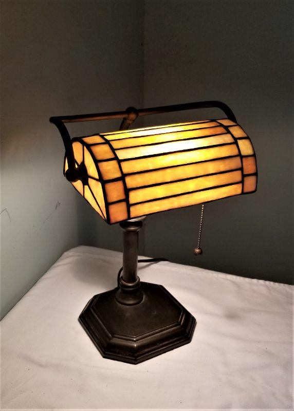 Nice desk or library table lamp in the Art Deco style - good working condition. 10.5" across, 15" tall.
