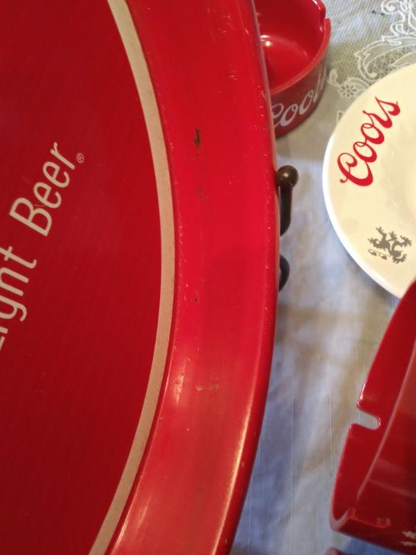 SERVING TRAY HAS LOSS OF PAINT ALL ALONG THE BACK RIM AND A FEW SPOTS ON FRONT