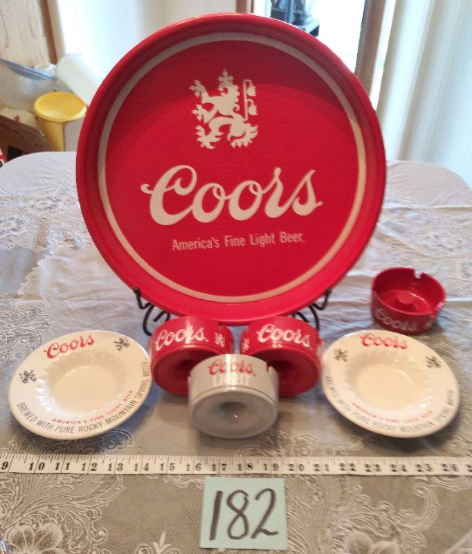 2 PORCELAIN ASHTRAYS & 4 PLASTIC