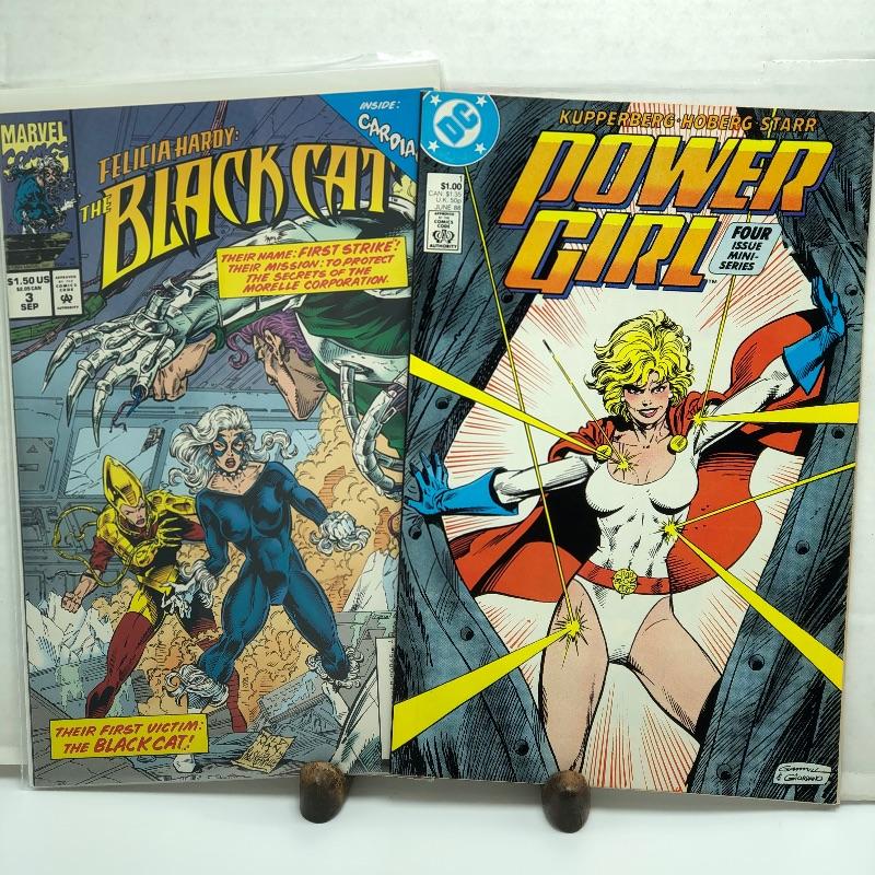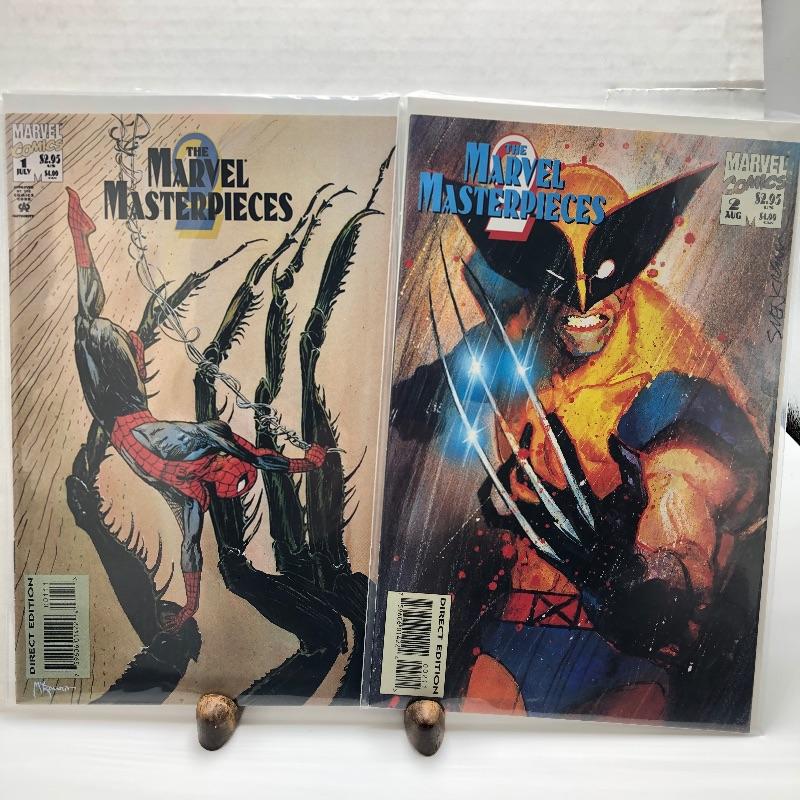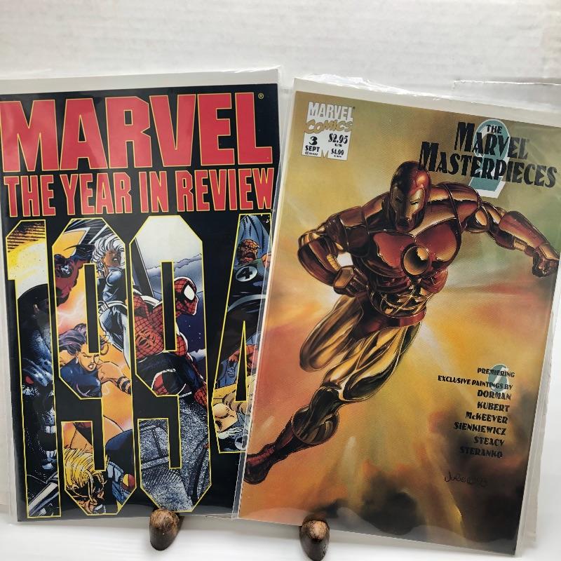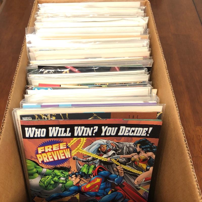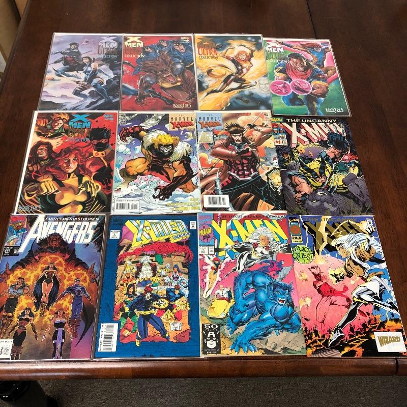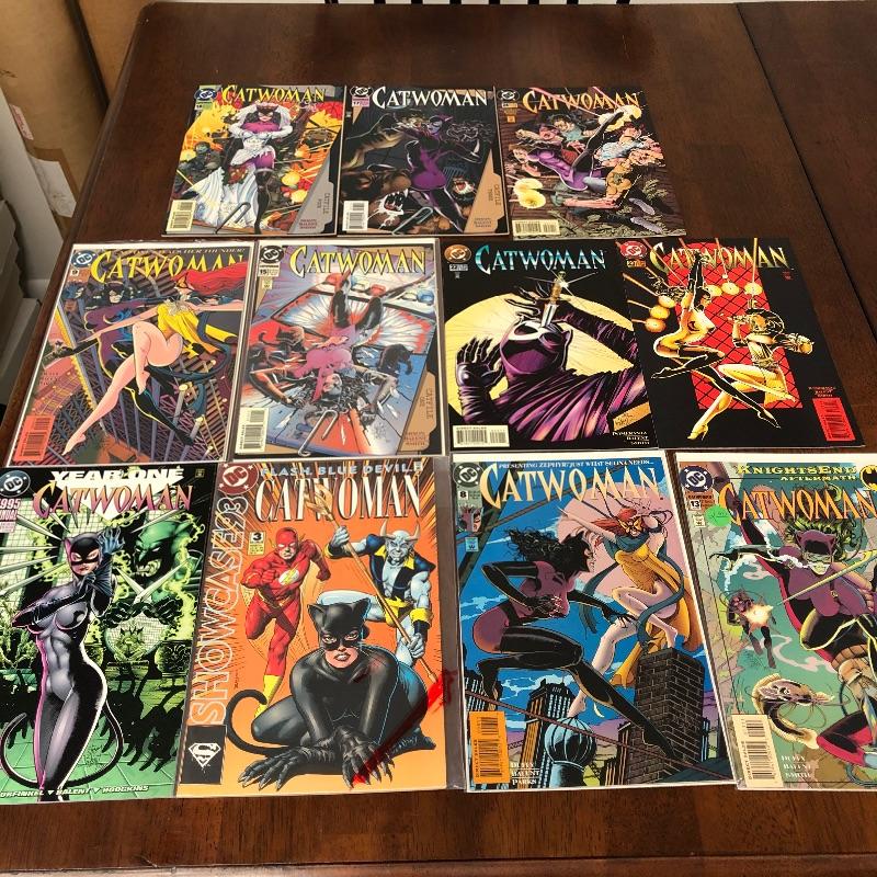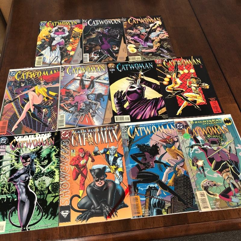 Nice selection of mostly 1990's comics from DC and Marvel. Most all are in selves and if not they are in good condition overall. Some are No. 1 like Green Arrow. Collection includes Cat woman, Spider woman, Frank Frazetta, Dark Hawk, Black Cat, Amethyst, Joni Thunder, The Huntress, Black Widow, Marvel Universe, Marvel Masterpieces,Excalibur, Captain America, Who's Who, Superman, Spiderman, Batman, x-Men and more, It does not appear that any are complete collections but several of the most common. These might go great with the tasing cards in Lots 60 - 64 of trading cards.
