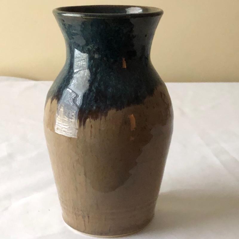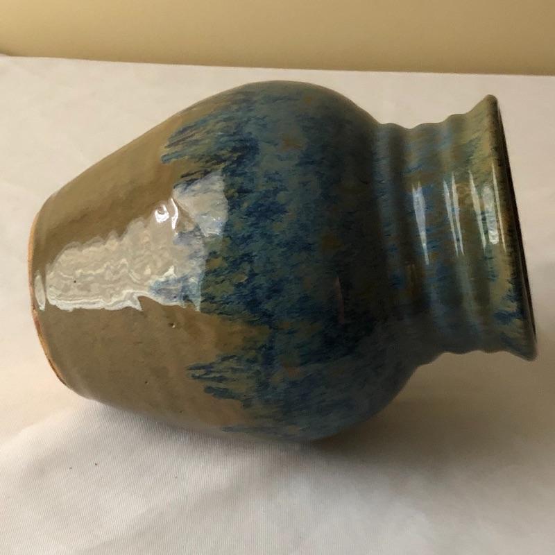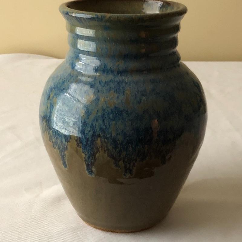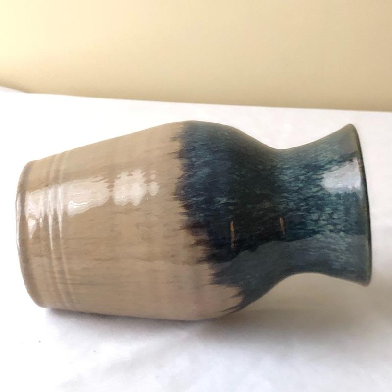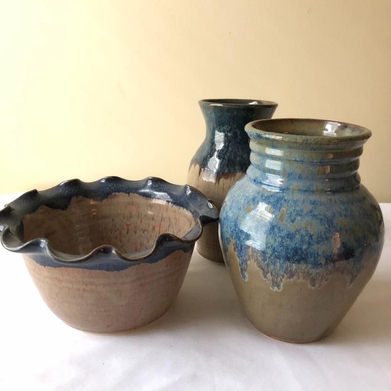 Two Lovely Earth and Fire pottery pieces, a planter & vase, along with another complimentary larger vase. All are glazed inside & out except for their bottoms. Planter or decorative bowl measures 8 x 8 x 4. Shipping Available.