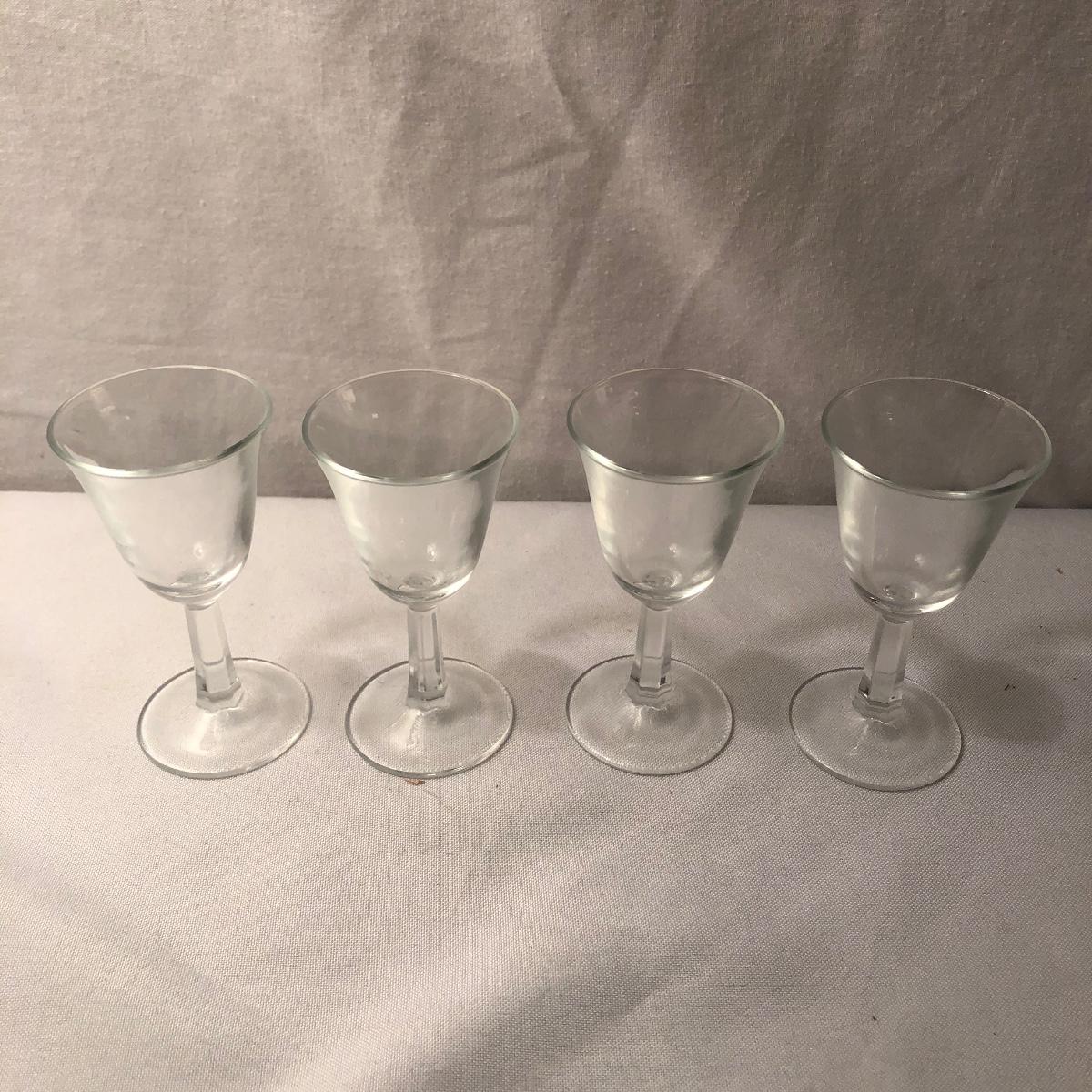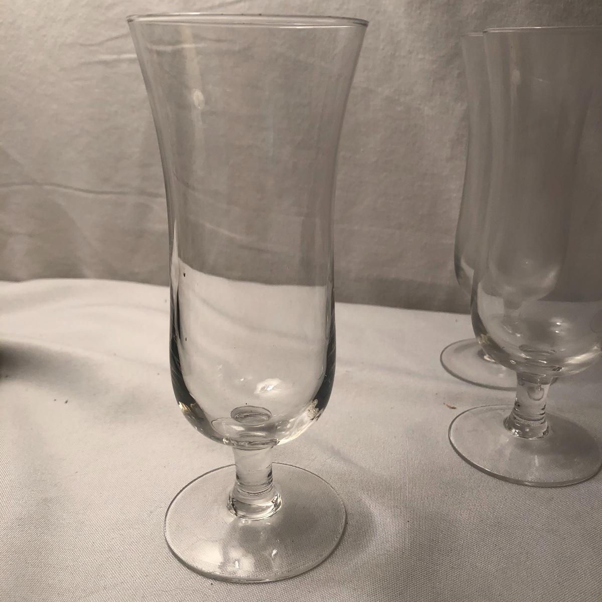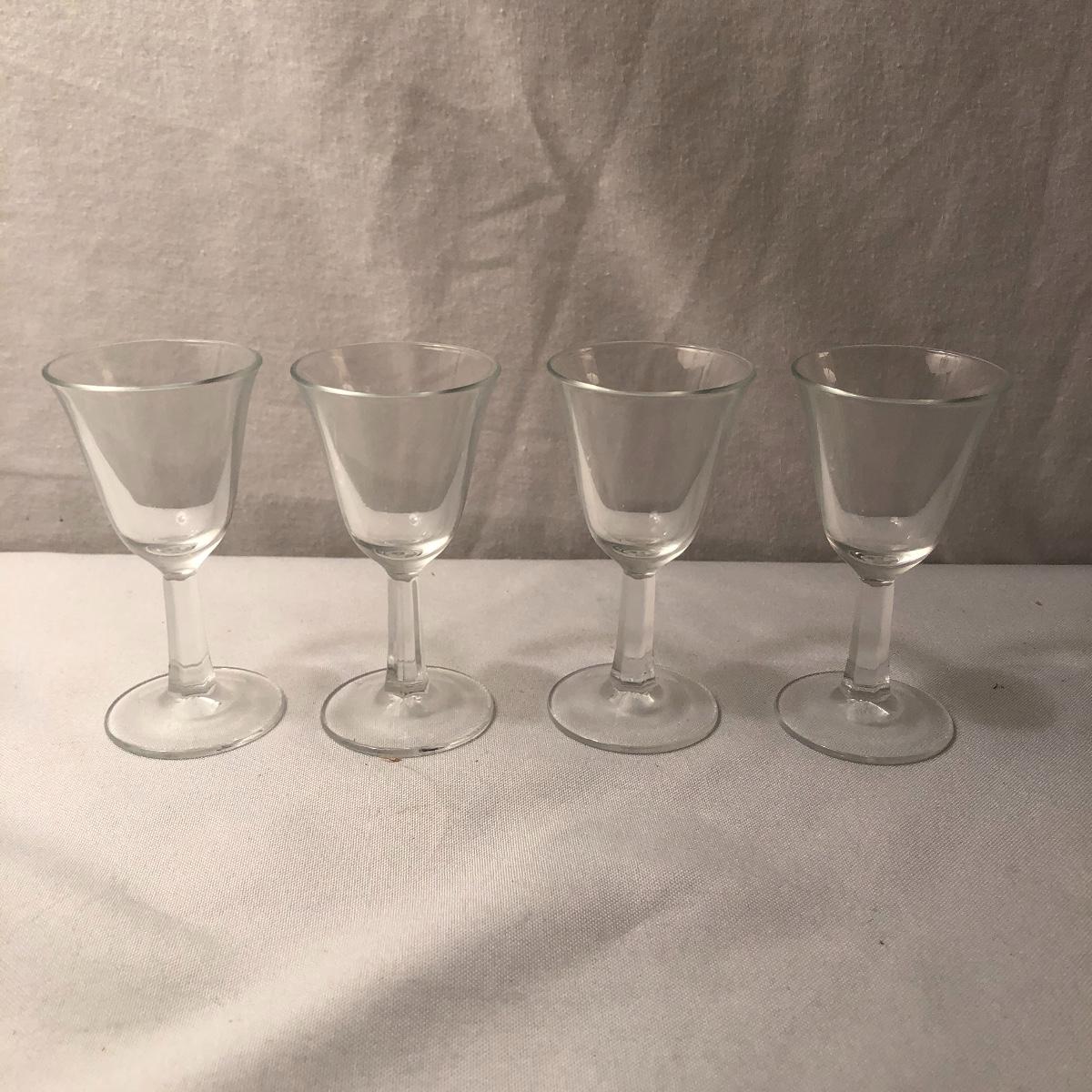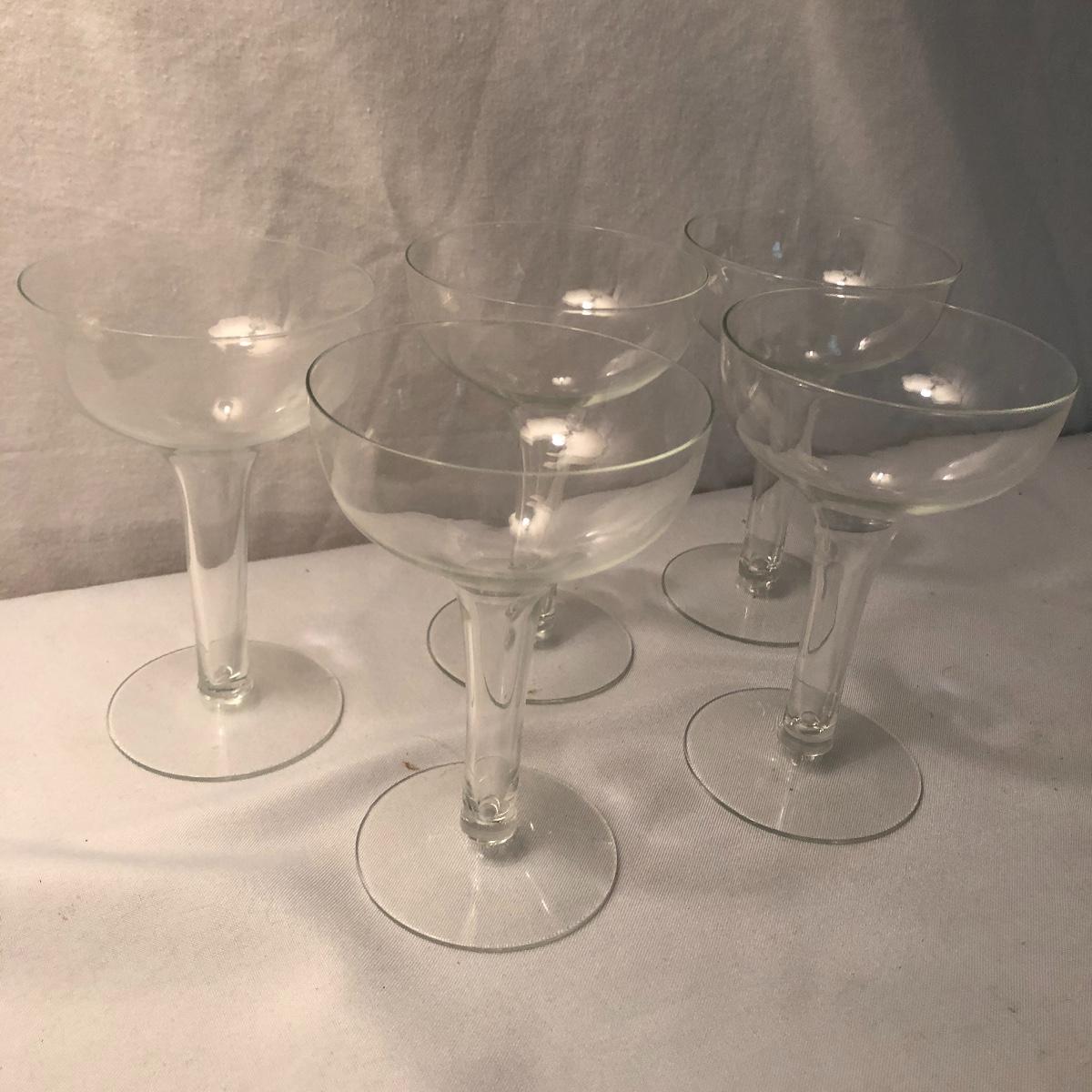 If expanding your glassware collection is your goal, this lot has just what you need. Seven short-stemmed clear glasses that have a curved body begin this lot. Eight glasses are originally pictured due to the fact that one was found broken after. Four glasses are very similar in style to the first eight and four small sampling glasses are included. Next is a set of six round bodied glasses with short stems, five cocktail glasses, and five stemmed geometric glasses. Lastly are four glasses with floral designs around the body and decorative stems. This variety of stemware is great for any hosting.