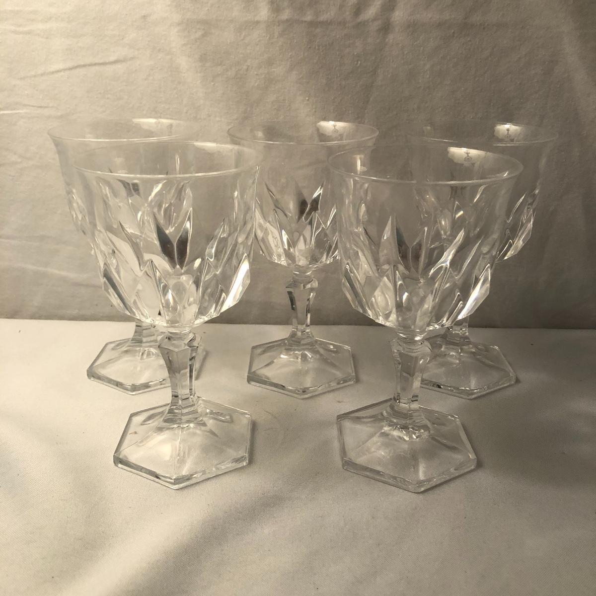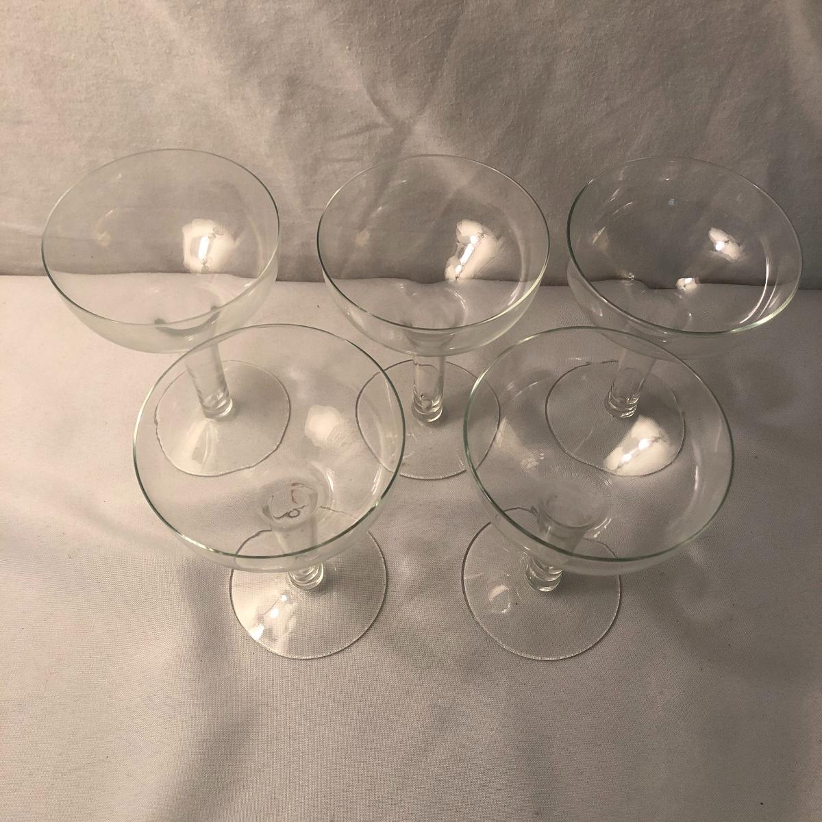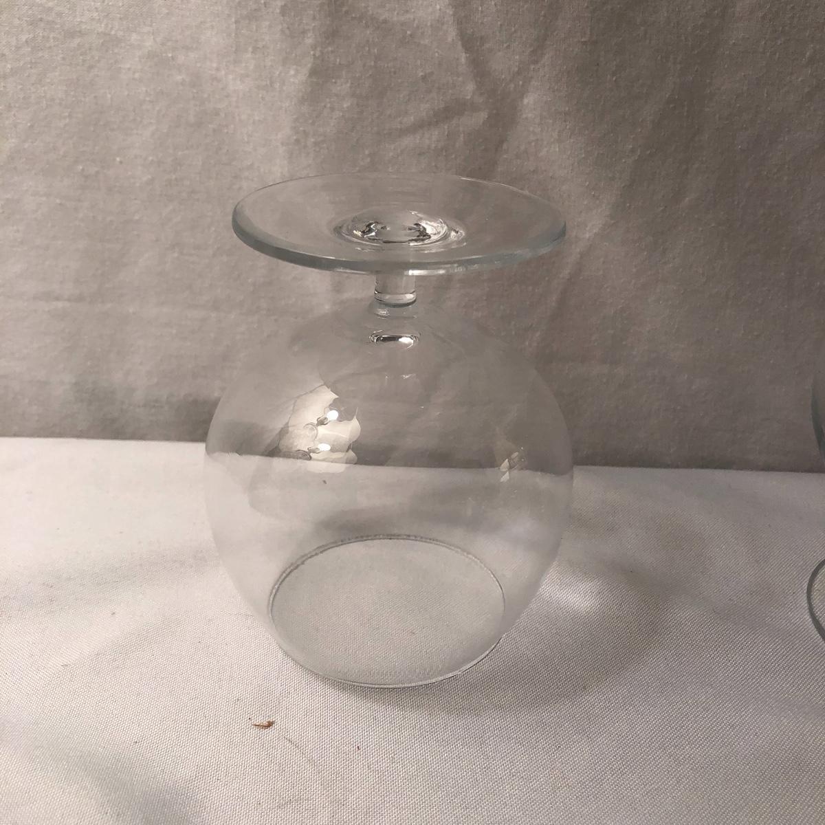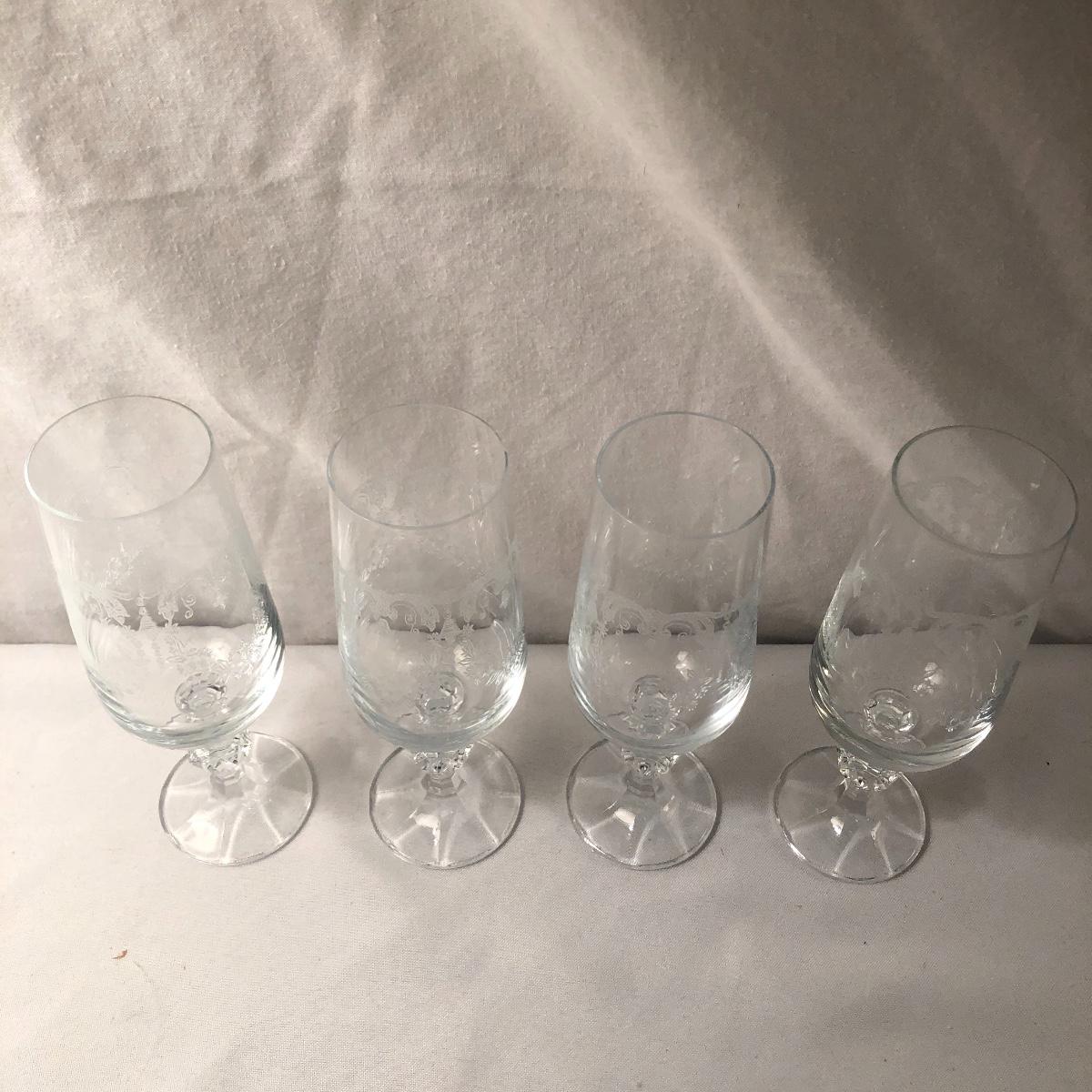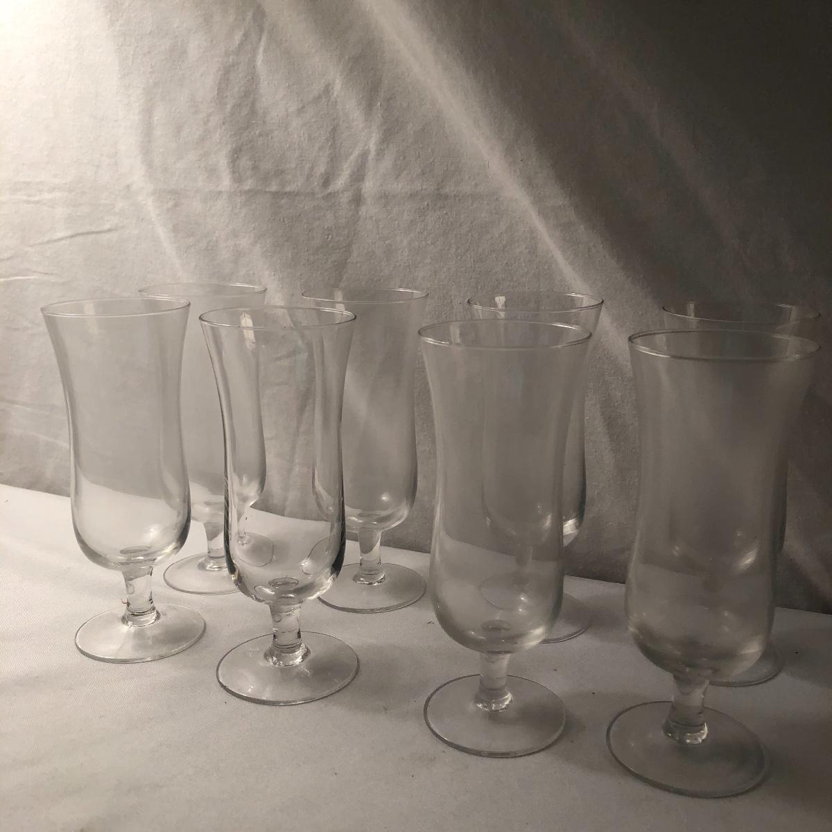 If expanding your glassware collection is your goal, this lot has just what you need. Seven short-stemmed clear glasses that have a curved body begin this lot. Eight glasses are originally pictured due to the fact that one was found broken after. Four glasses are very similar in style to the first eight and four small sampling glasses are included. Next is a set of six round bodied glasses with short stems, five cocktail glasses, and five stemmed geometric glasses. Lastly are four glasses with floral designs around the body and decorative stems. This variety of stemware is great for any hosting.