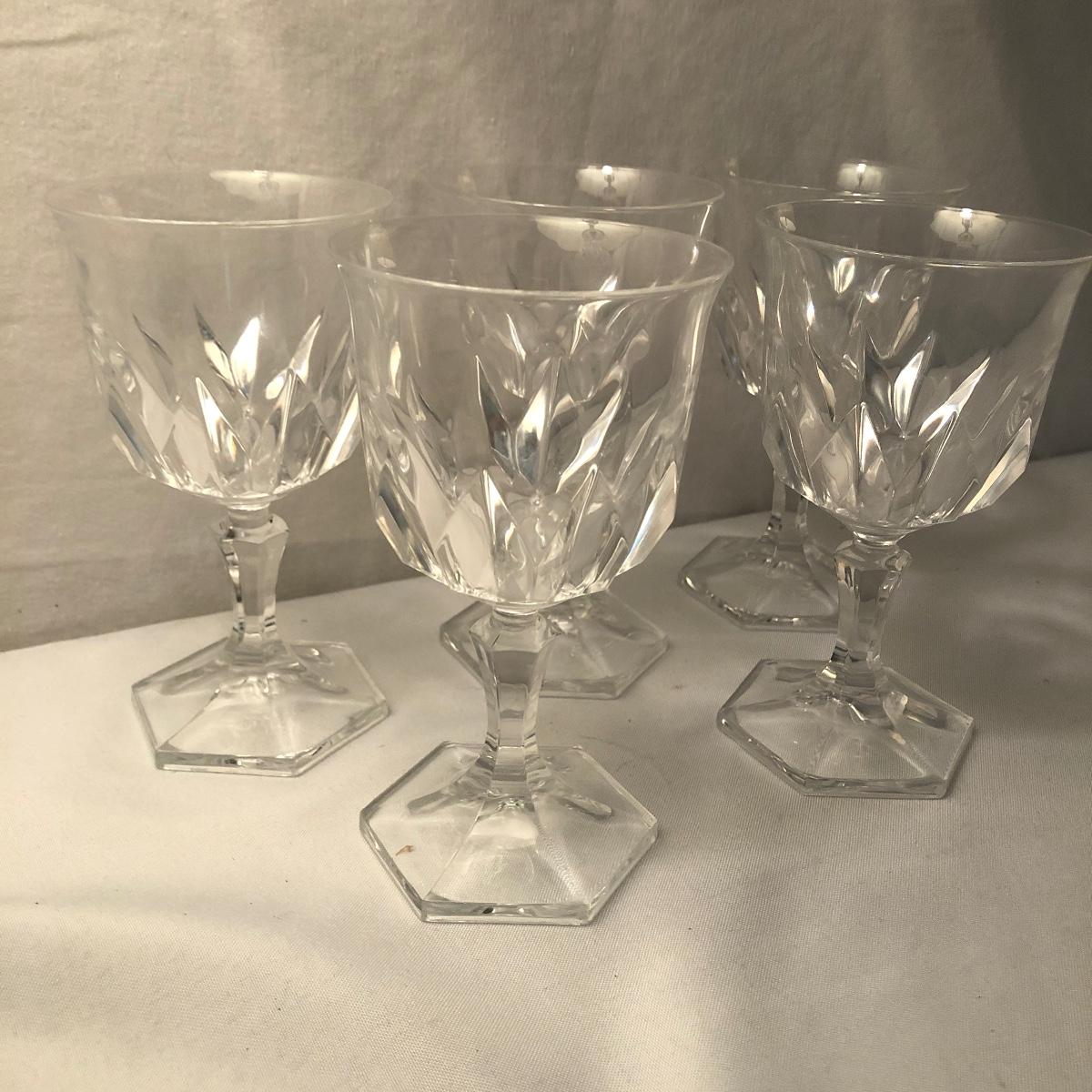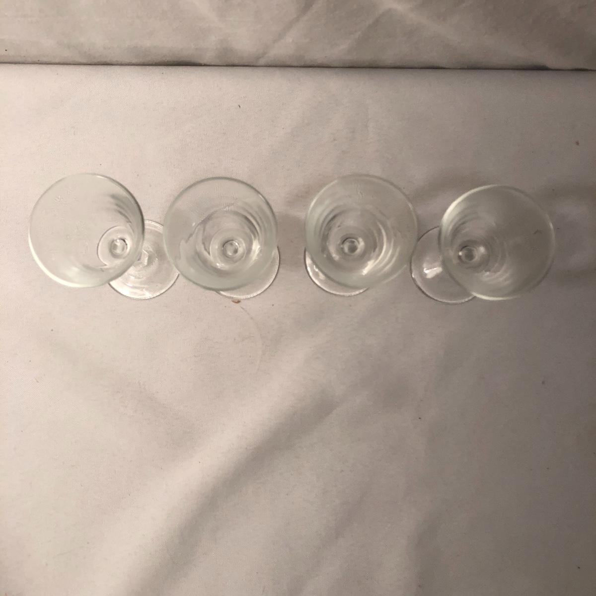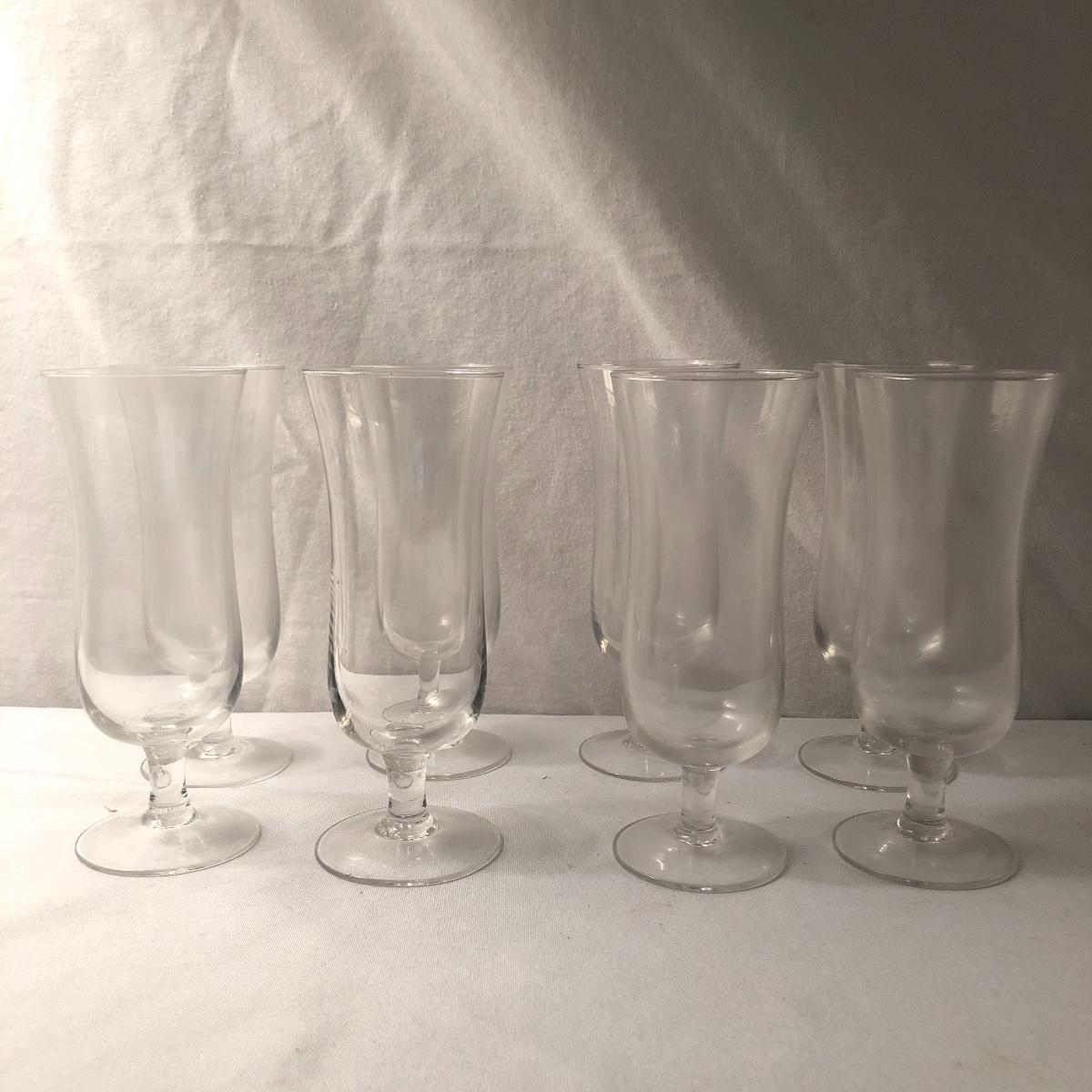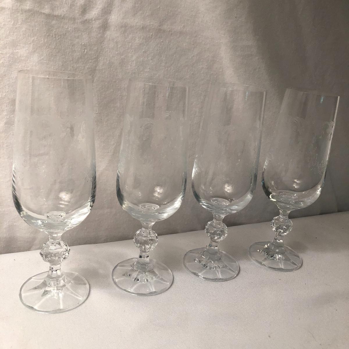 If expanding your glassware collection is your goal, this lot has just what you need. Seven short-stemmed clear glasses that have a curved body begin this lot. Eight glasses are originally pictured due to the fact that one was found broken after. Four glasses are very similar in style to the first eight and four small sampling glasses are included. Next is a set of six round bodied glasses with short stems, five cocktail glasses, and five stemmed geometric glasses. Lastly are four glasses with floral designs around the body and decorative stems. This variety of stemware is great for any hosting.