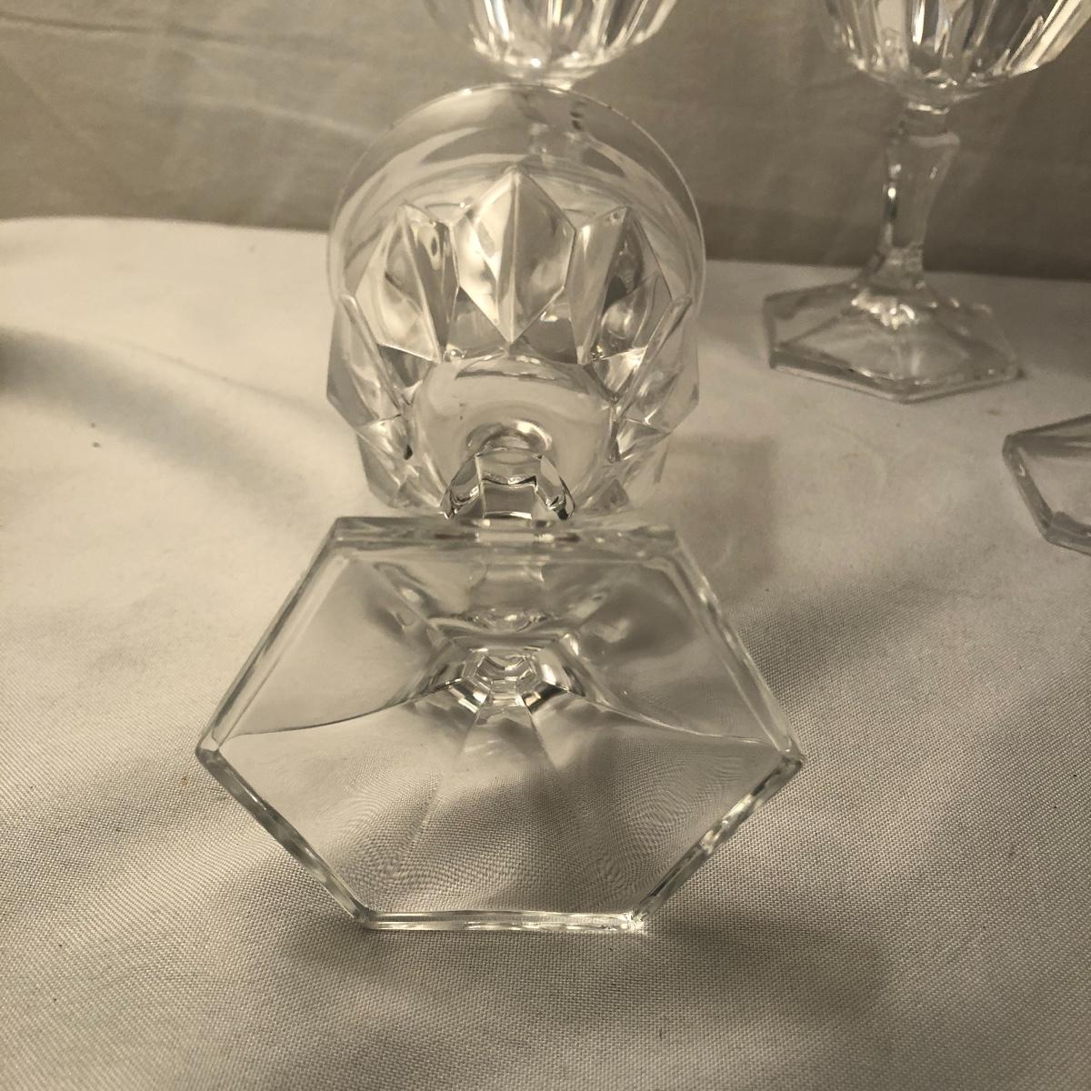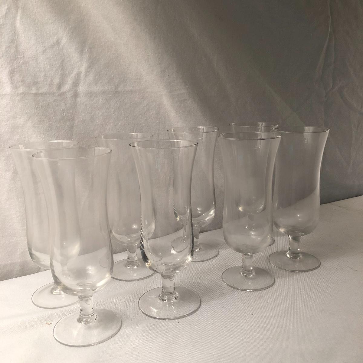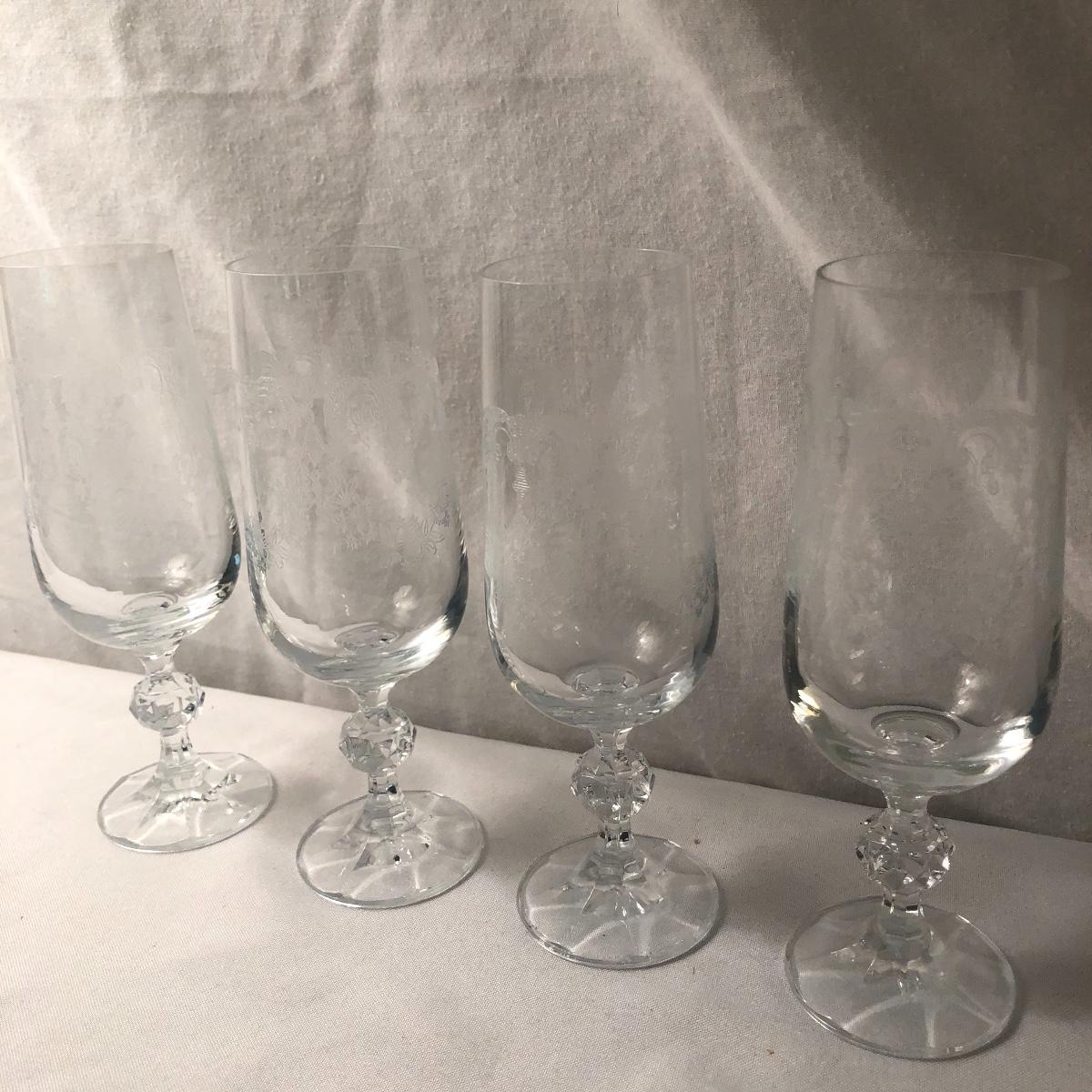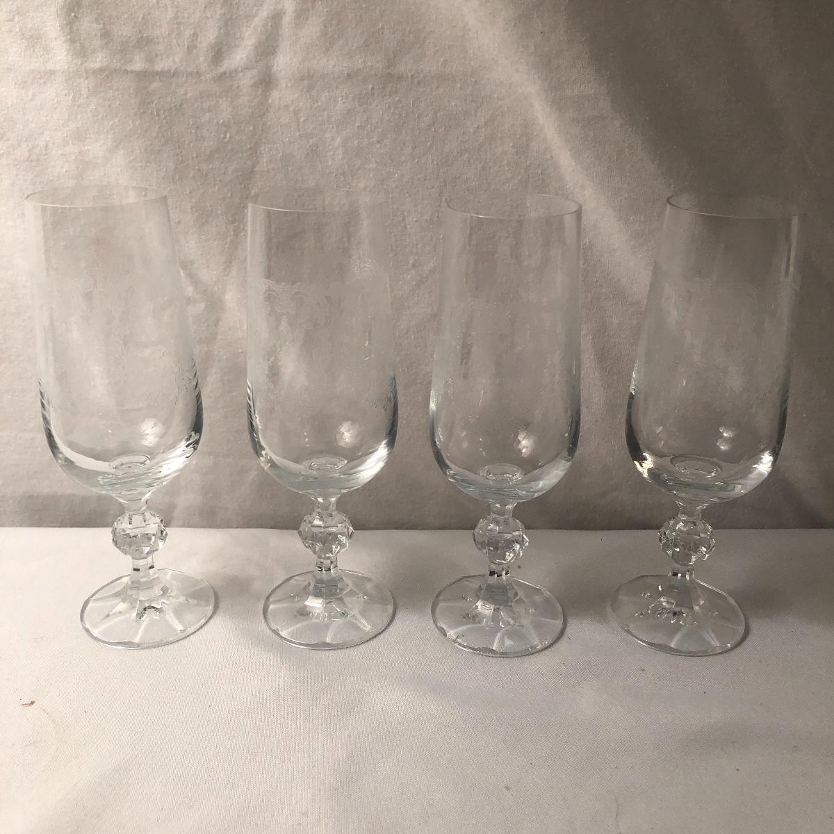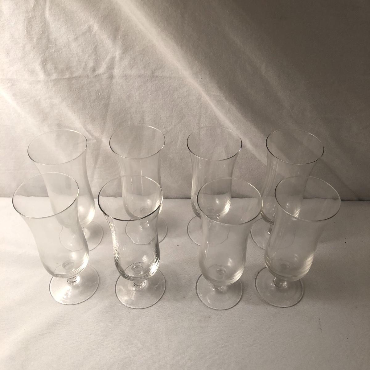 If expanding your glassware collection is your goal, this lot has just what you need. Seven short-stemmed clear glasses that have a curved body begin this lot. Eight glasses are originally pictured due to the fact that one was found broken after. Four glasses are very similar in style to the first eight and four small sampling glasses are included. Next is a set of six round bodied glasses with short stems, five cocktail glasses, and five stemmed geometric glasses. Lastly are four glasses with floral designs around the body and decorative stems. This variety of stemware is great for any hosting.