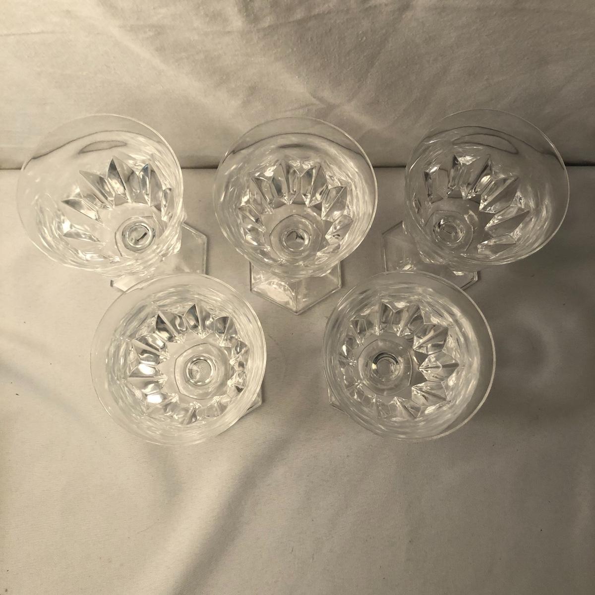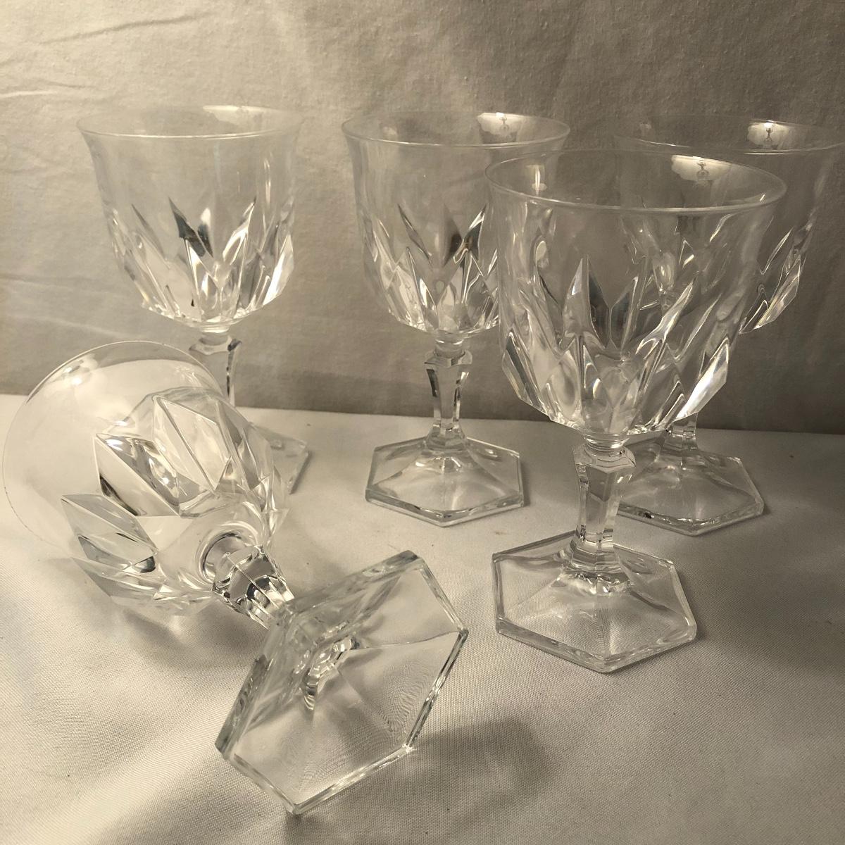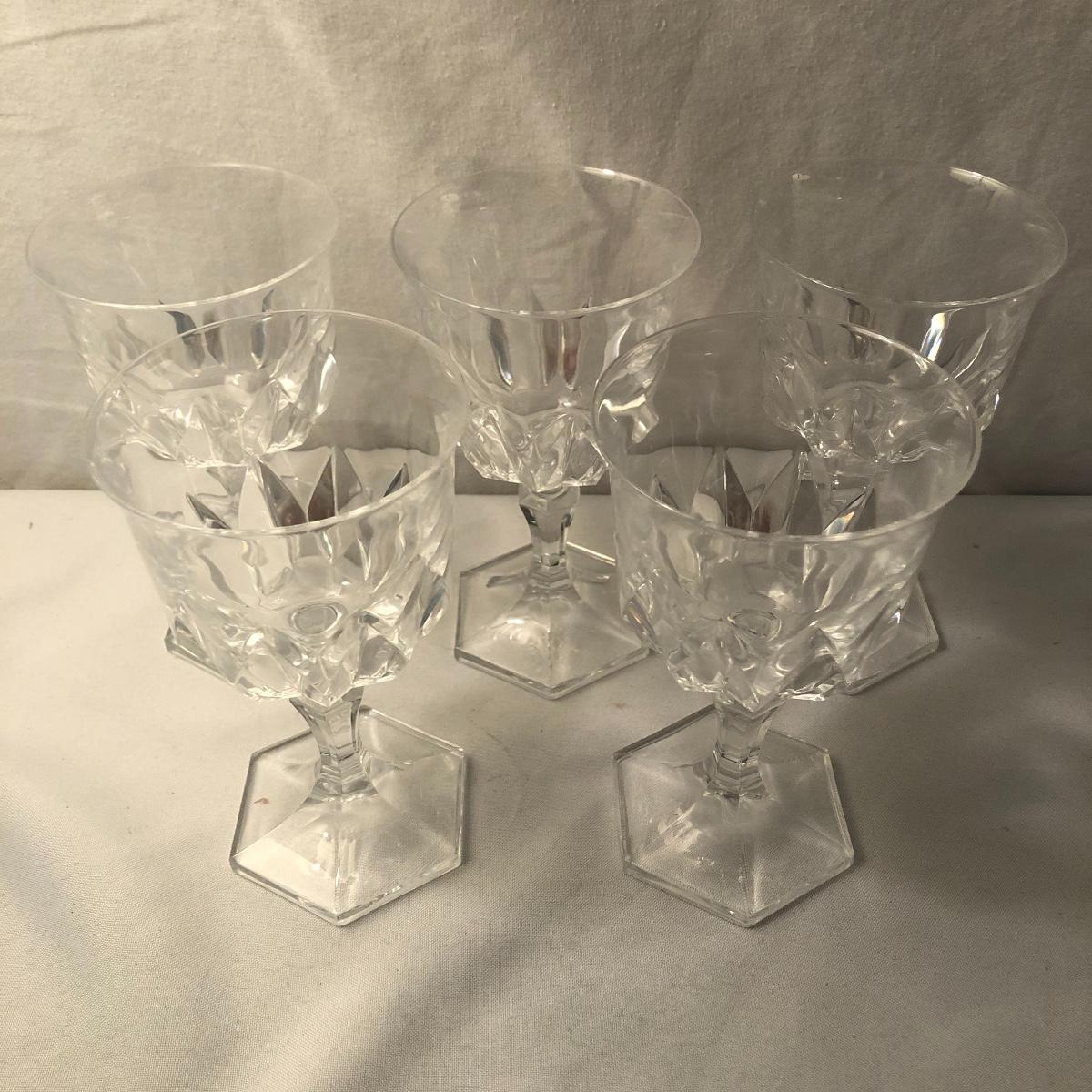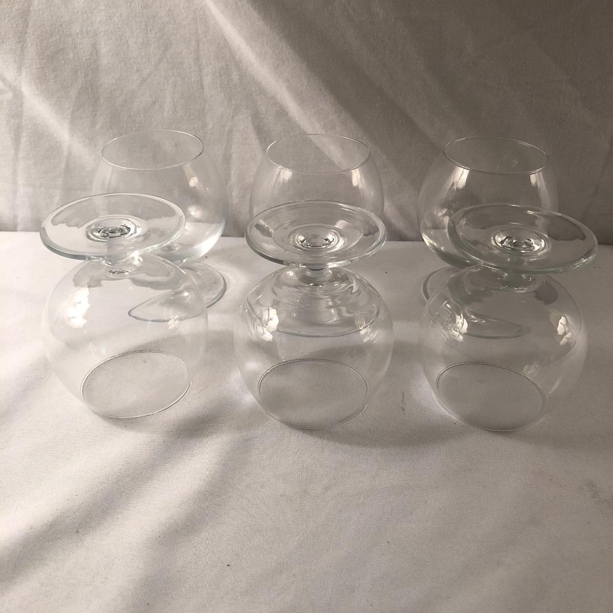 If expanding your glassware collection is your goal, this lot has just what you need. Seven short-stemmed clear glasses that have a curved body begin this lot. Eight glasses are originally pictured due to the fact that one was found broken after. Four glasses are very similar in style to the first eight and four small sampling glasses are included. Next is a set of six round bodied glasses with short stems, five cocktail glasses, and five stemmed geometric glasses. Lastly are four glasses with floral designs around the body and decorative stems. This variety of stemware is great for any hosting.