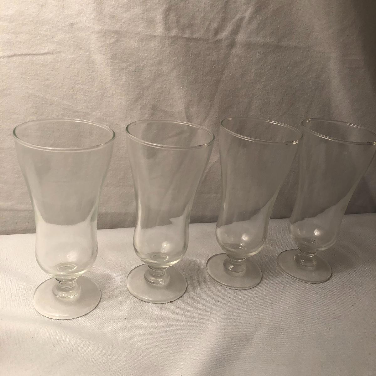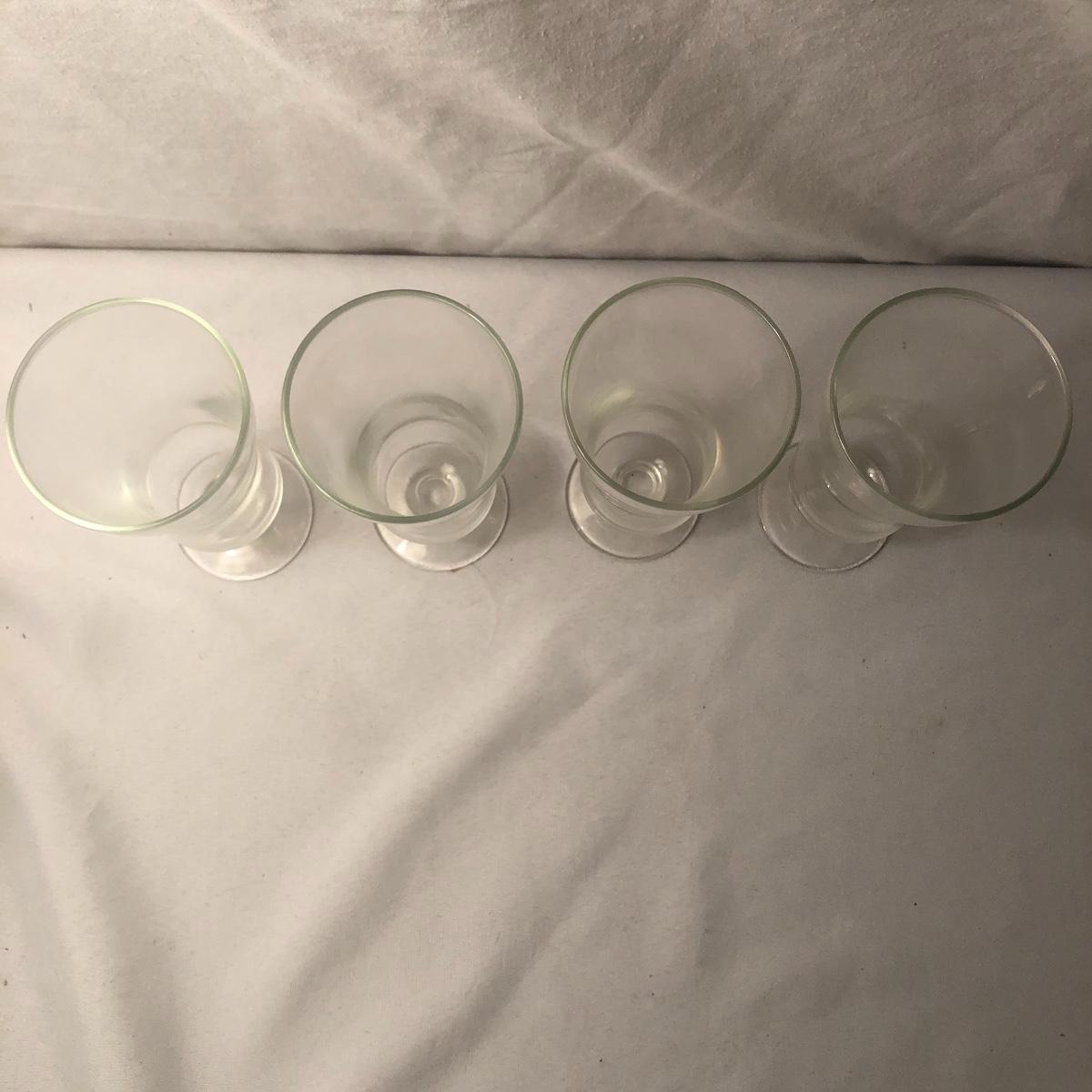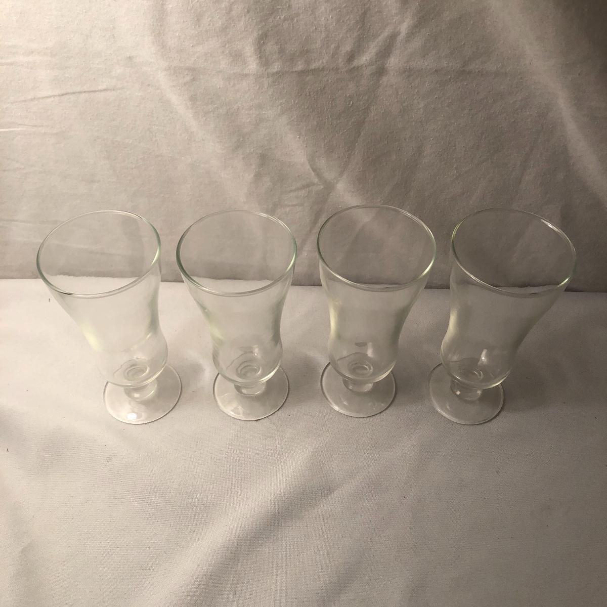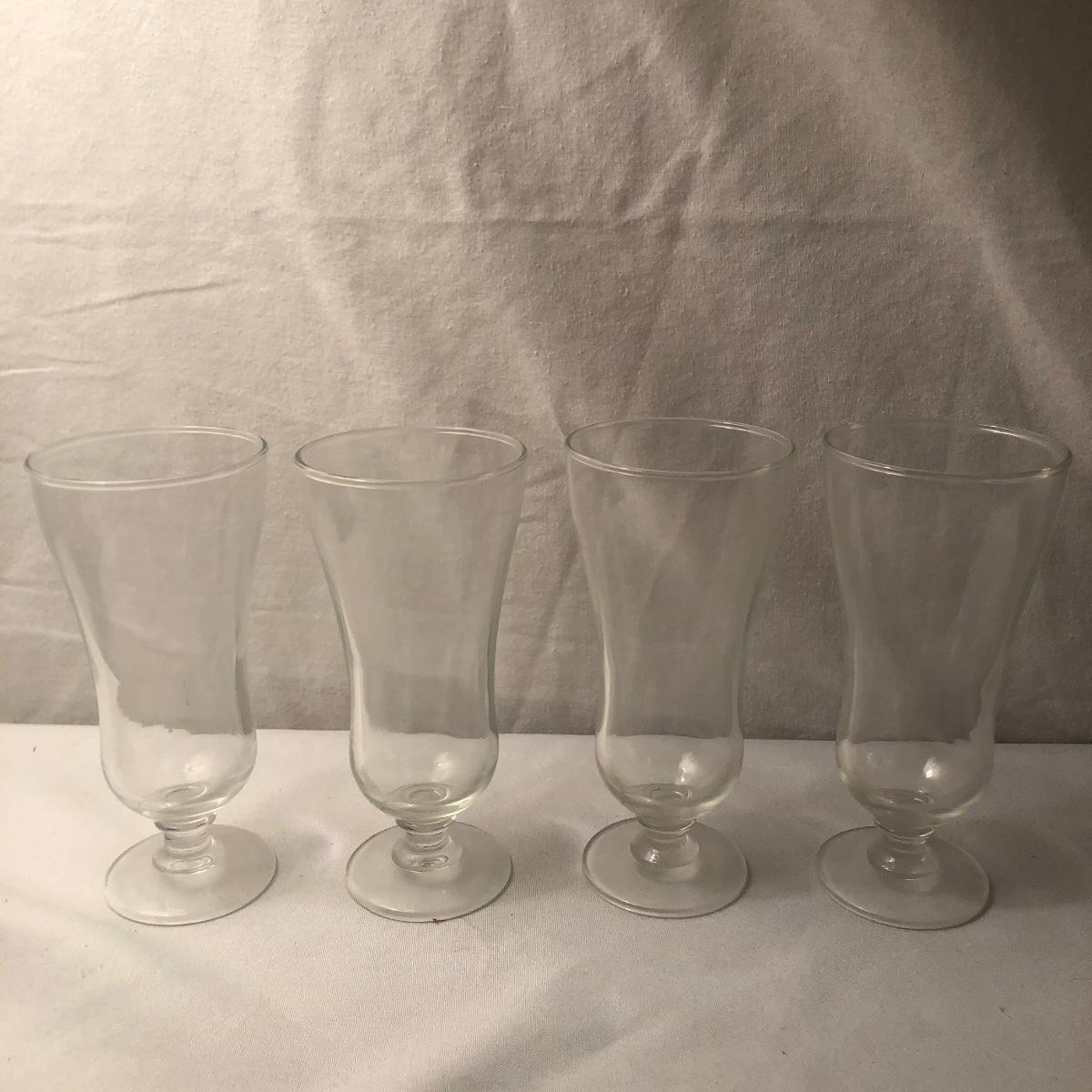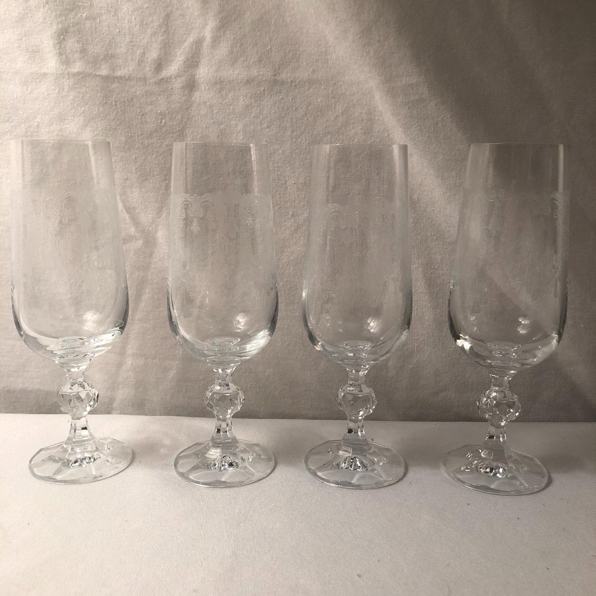 If expanding your glassware collection is your goal, this lot has just what you need. Seven short-stemmed clear glasses that have a curved body begin this lot. Eight glasses are originally pictured due to the fact that one was found broken after. Four glasses are very similar in style to the first eight and four small sampling glasses are included. Next is a set of six round bodied glasses with short stems, five cocktail glasses, and five stemmed geometric glasses. Lastly are four glasses with floral designs around the body and decorative stems. This variety of stemware is great for any hosting.