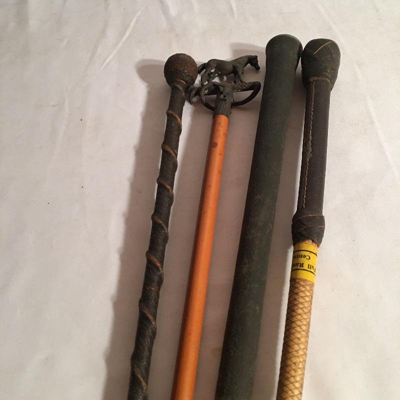 Get your horse to pay attention with this selection of four crops. One crop has metal horse on handle with bamboo shaft that would look great on display as well as getting your horses attention.