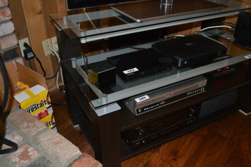 LOT 182. GLASS TV/MEDIA STAND