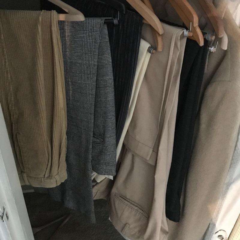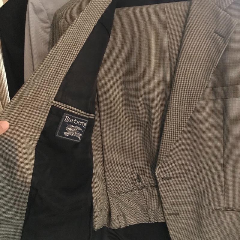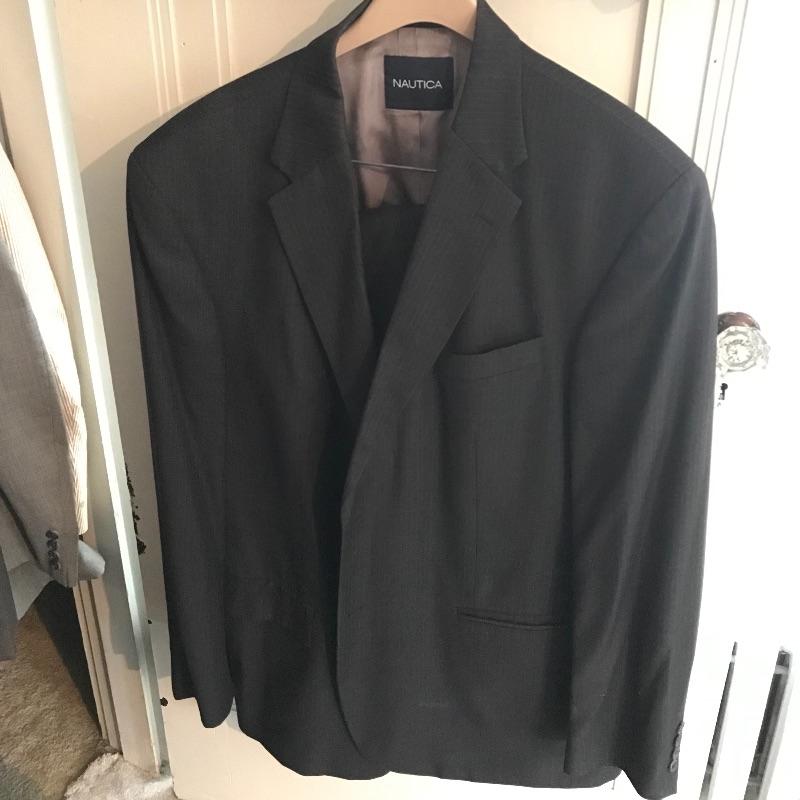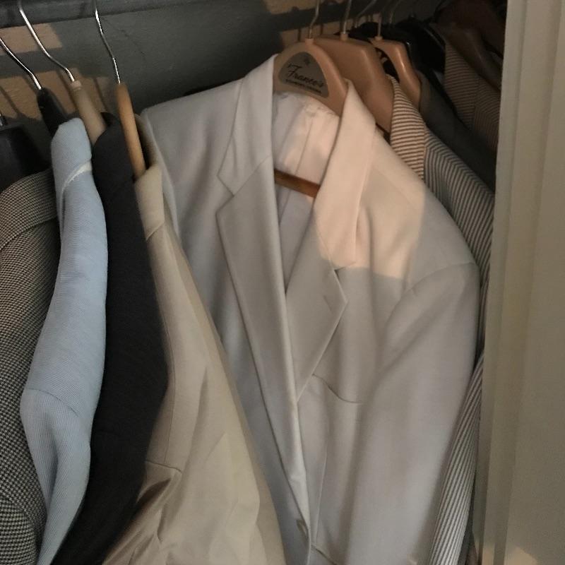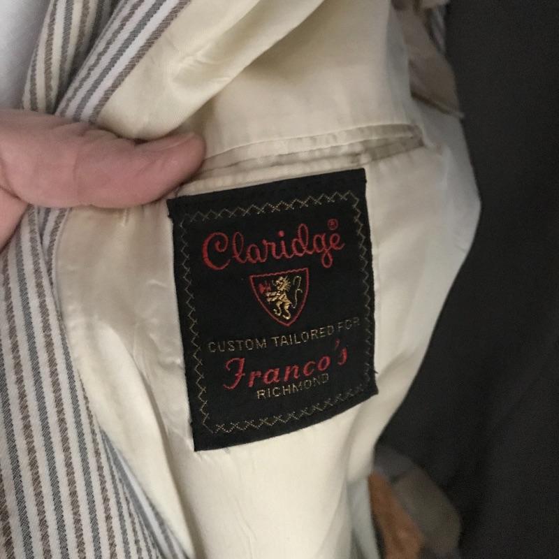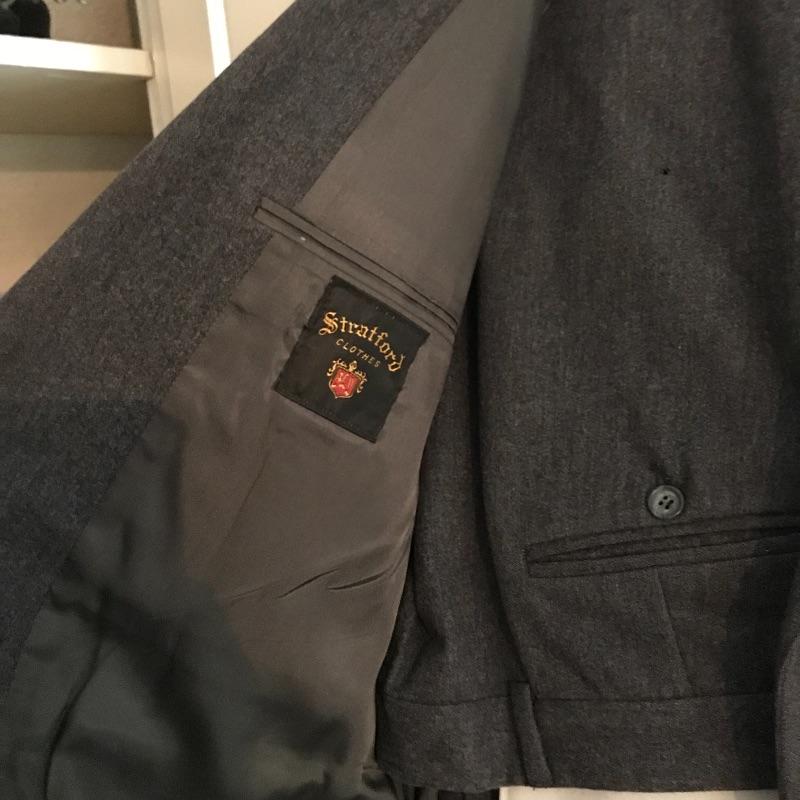Over thirty articles of men’s business wear! Lot includes numerous suits, pants, and sport jackets for any occasion! Colors and fabrics from across the spectrum. Most are tailored and sizes are unknown, but they appear to be large to extra large sizes. Collection also includes not one, but two camel hair jackets! Stains can be found, it is possible they can be removed by a simple dry cleaning. Only a few labels are noted in photos, please come to the preview to see them all! No shipping.