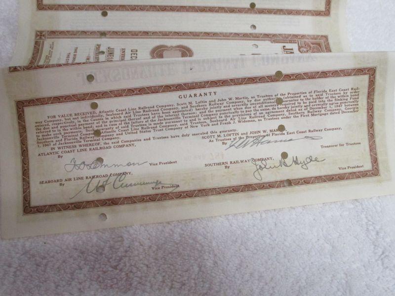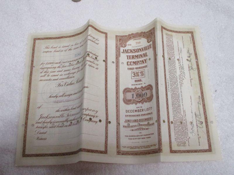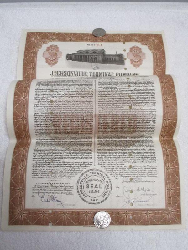 Lot 182 - Jacksonville Terminal Company  1948 Florida $1000 CSX Bond Certificate