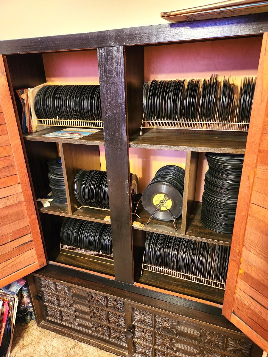 You get all the records you see here - not the cabinet (we'll put them in a tote for you). None has sleeves. Hey - this family had jukeboxes! Selling all as one lot. They have not been gone through.